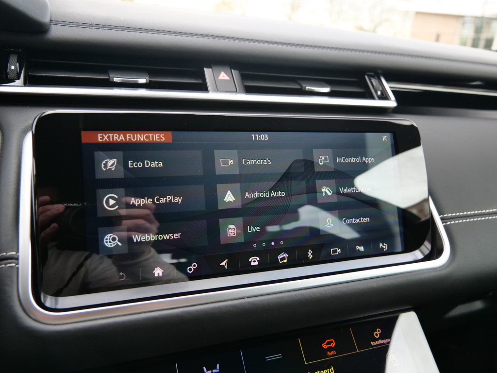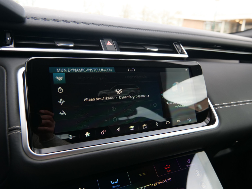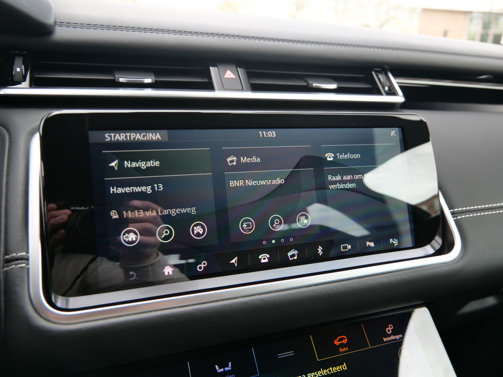 De nieuwste veiligheidssystemen komen in deze Land Rover Range Rover Velar samen. Verkeersborddetectie herkent tijdelijke en permanente verkeersborden langs en boven de weg. Het Lane-keeping systeem registreert permanent of u binnen de lijnen van de rijstrook blijft; dwaalt u onbedoeld af, dan waarschuwt het systeem en corrigeert de koers. Het forward collision warning-systeem waarschuwt indien een botsing dreigt met een voorliggend of tegemoetkomend voertuig. Bovenop deze veiligheidsfeatures heeft deze Land Rover bovendien head-up display, dodehoekdetectie, hill hold functie, vermoeidheidsherkenning, autonoom remsysteem en bandenspanningcontrolesysteem.