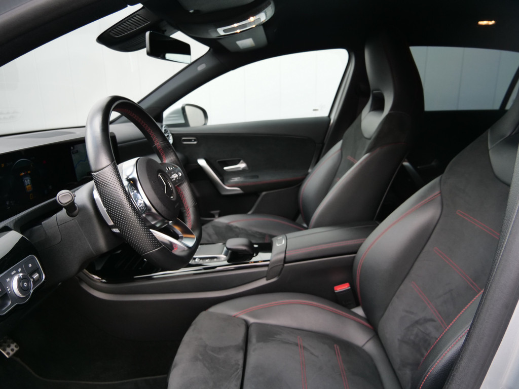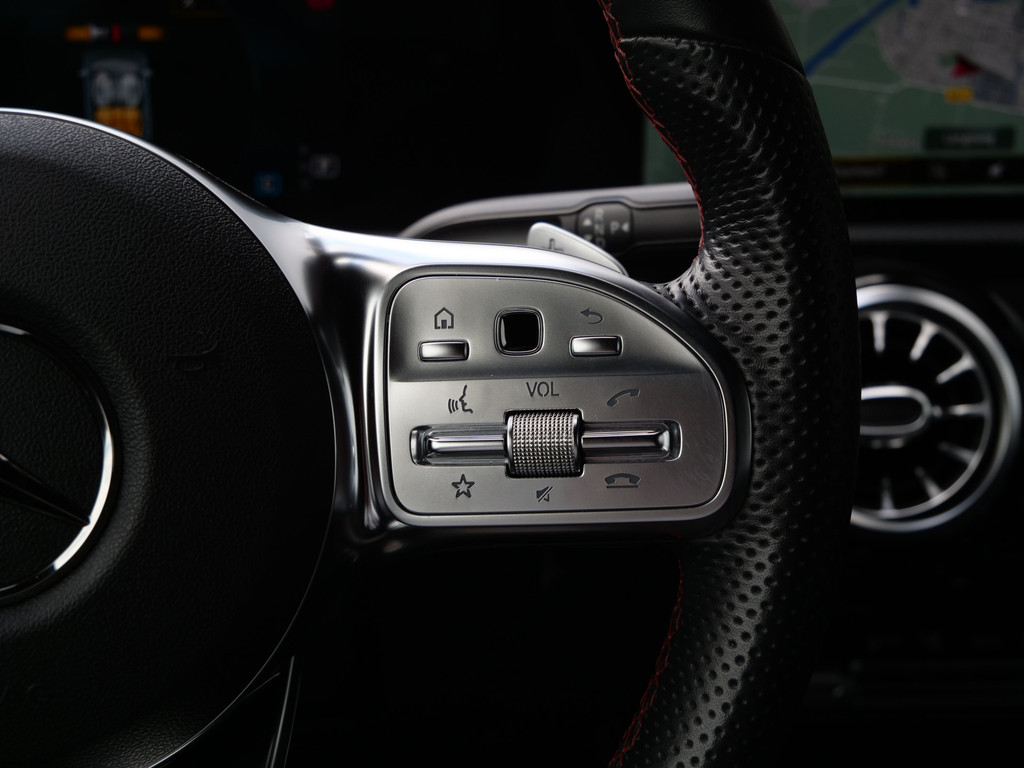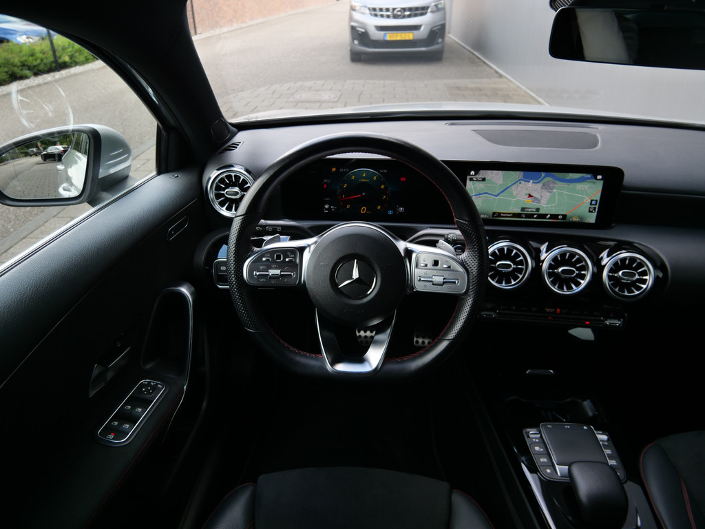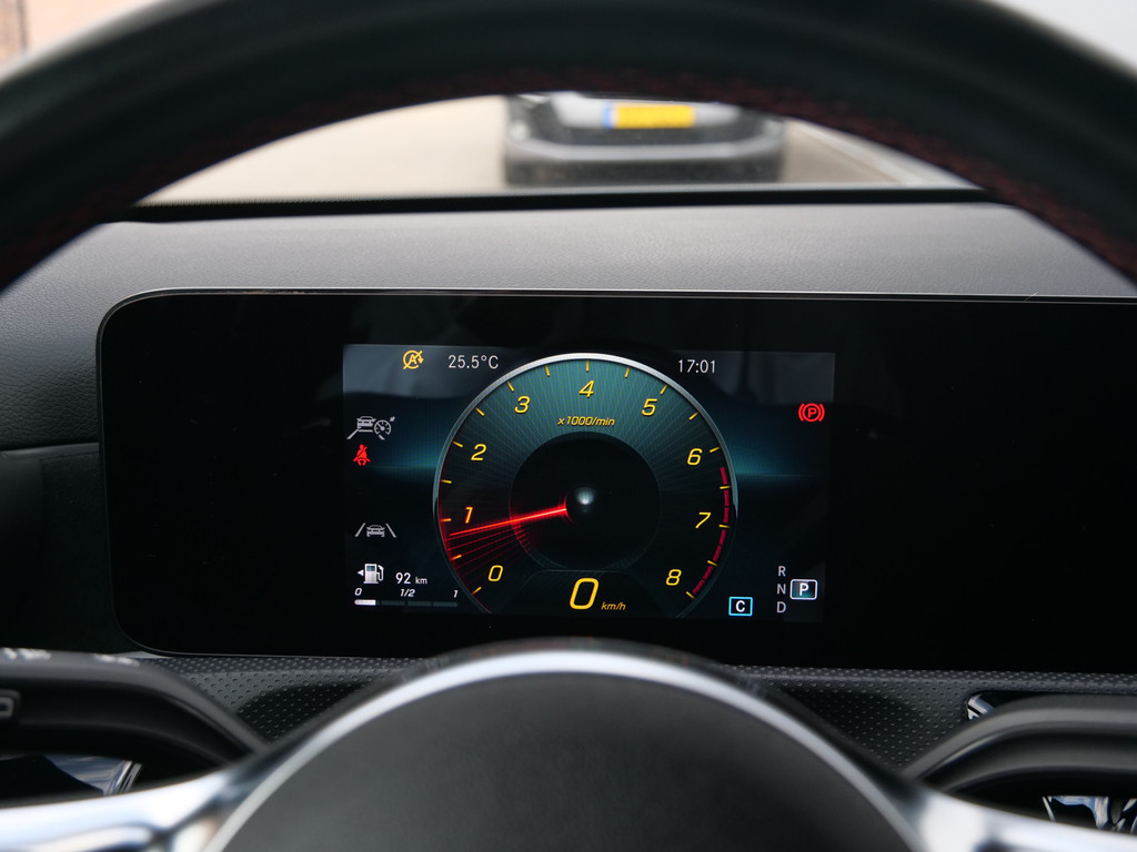 Het digitale dashboard geeft een nauwkeurig en makkelijk overzicht van alle belangrijke functies. Niets achter deze auto blijft verborgen door de achteruitrijcamera. Een veilig gevoel! De speciale app verbindt met Connected Services, die de status van vitale functies bijhoudt en waarschuwt als u bijvoorbeeld moet tanken, de bandenspanning moet controleren of olie moet bijvullen. De electronic climate control zorgt onder alle omstandigheden voor een prettige temperatuur. Deze Mercedes-Benz A-klasse maakt het rijden graag gemakkelijk. Daarom verzorgt de regensensor de mate van ruitreiniging die de ruitenwissers moeten leveren bij neerslag. Deze Mercedes-Benz is voorzien van dashboard met spraakbediening, navigatiesysteem met harde schijf, WIFI-hotspot, sportstuur met schakelpaddels, DAB ontvangst en automatisch dimmende buitenspiegels.