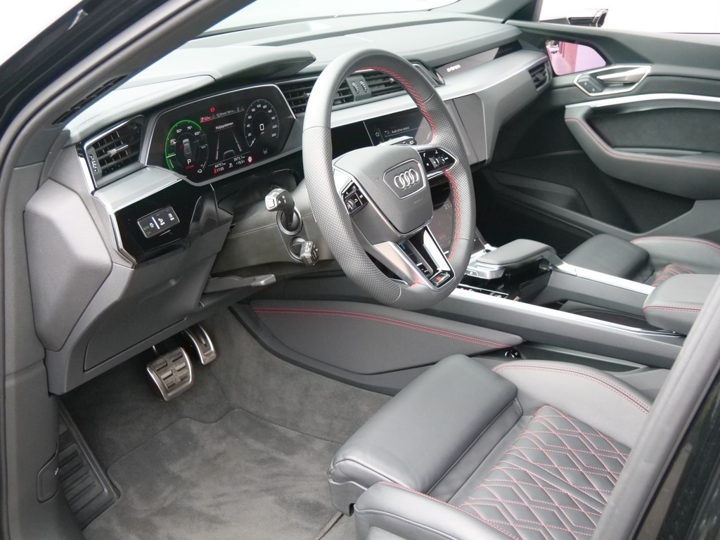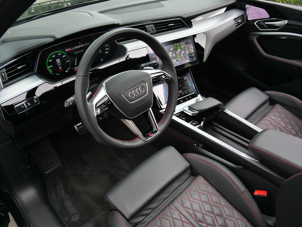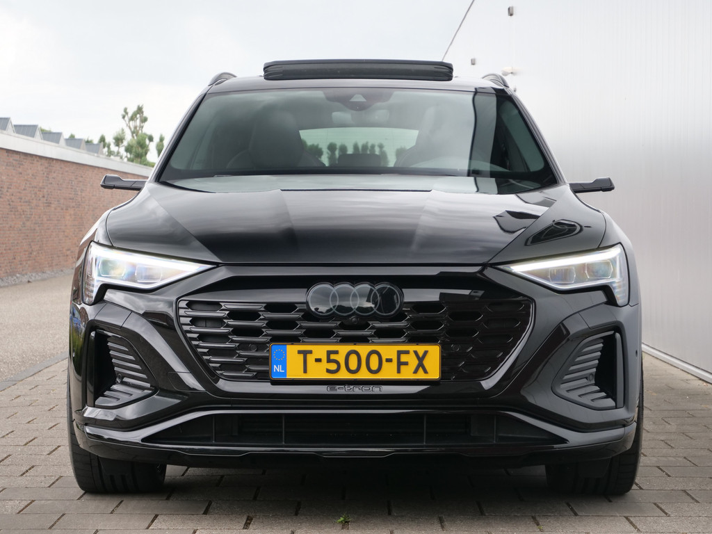 Duurzaam en dynamisch, de Audi Q8 e-tron verenigt deze twee uitersten in zich. Dit is een auto uit 2023, er staat 44750 kilometer op de teller. De fluisterstille elektromotor zorgt voor pittige rijprestaties zonder uitstoot. Maar wel met fiscaal voordeel! De S-Line styling geeft een niet te missen uitstraling. Een krachtige motor geeft deze auto zijn sportieve prestaties. Dat noemen ze nou een ruimtelijk effect: het elektrisch bediende glazen panorama dak, dat net zo gemakkelijk open en dicht gaat als de elektrisch bedienbare achterklep. En ondertussen het ware luxegevoel van het lederen interieur. Winter... Eerst krabben, dan genieten van de stoelverwarming. Bij de rijke uitrusting horen ook 22 inch lichtmetalen velgen, LED koplampen, adaptief dempingsysteem, warmtewerend glas, in delen neerklapbare achterbank en LED-achterlichten.