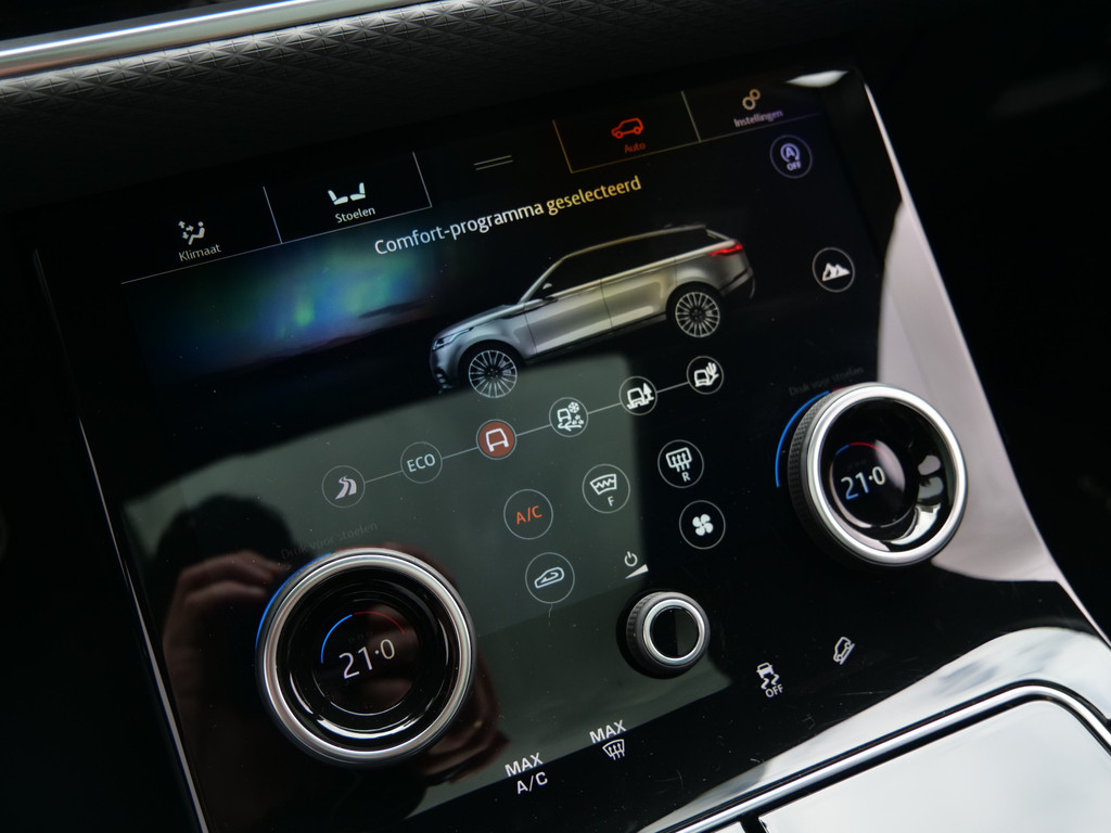 Plaats voor vijf personen of genoeg plek voor uw aankopen bij de bouwmarkt, de veelzijdige Land Rover Range Rover Velar biedt het allemaal. Een benzinemotor en een automatische transmissie zorgen dat u met deze SUV prima vooruitkomt. Als we het over kwaliteit en stijl hebben, wat dacht u dan van het lederen interieur? Koude start? Niet met de verwarmbare voorstoelen! Van binnen lijkt het allemaal uitermate ruim dankzij de vrije inval van daglicht via het elektrisch bediende glazen panoramadak. De elektrische achterklep opent met een druk op de knop, zodat u gemakkelijk toegang heeft tot de bagageruimte. Met matrix LED-verlichting rijdt u eigenlijk altijd met groot licht, dus maximaal zicht. Toch is verblinden er niet bij, want het systeem regelt de verlichting zo dat tegenliggers er geen last van hebben. U wordt in deze auto ook getrakteerd op 22 inch lichtmetalen velgen, adaptief dempingsysteem, trailer assistent, donker getint glas achter, in delen neerklapbare achterbank en LED-achterlichten.