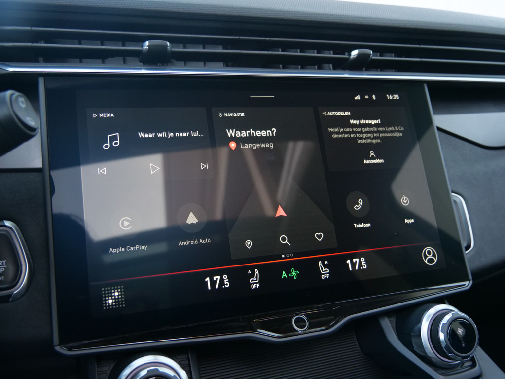 Deze Lynk & Co biedt u niet alleen comfort en rijplezier, maar ook veiligheid. Actieve veiligheidssystemen houden voor u de weg in de gaten en reageren op onvoorziene situaties voordat u dat kunt. Dat de auto steeds meer taken van de bestuurder overneemt, merkt u bijvoorbeeld aan het systeem voor verkeersbord-detectie in deze auto. Met het Lane-keeping systeem gaat u nooit onbedoeld over de streep. De sensor van het forward collision warning-systeem registreert permanent de afstand tot voorliggers en grijpt in als een botsing dreigt. U bent mede dankzij dodehoekdetectie, hill hold functie, brake assist en vermoeidheidsherkenning steeds veilig onderweg.
