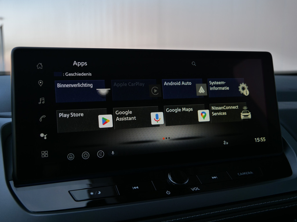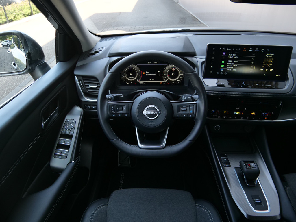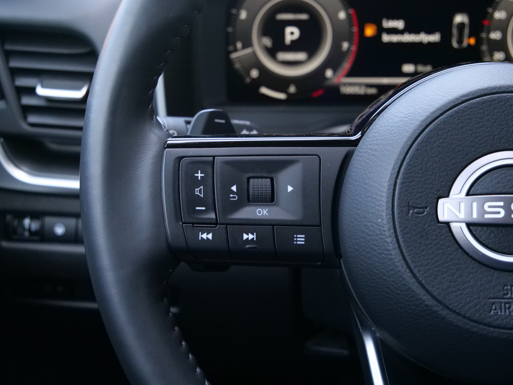 Begeef u op de geweldige rit door de digitale wereld van mobiliteit waar alles wat u wenst voor comfort en veiligheid, wordt geprojecteerd op het digitale dashboard. De 360 graden camera op deze auto wordt verzorgd door vier geavanceerde camera's. Het biedt garantie van uitstekende beeldkwaliteit. Met adaptive cruise control houdt deze auto automatisch afstand tot uw voorligger. Filerijden? Doodvermoeiend. Daarom helpt de file assistent zo nodig een handje. Door automatisch afstand te houden, en te stoppen als uw voorligger stilstaat. Oliepeil, bandenspanning, sloten en andere functies zijn via een speciale app overal te checken dankzij Connected Services. Ook is de Nissan uitgerust met: navigatiesysteem, WIFI-hotspot, achteropkomend verkeer waarschuwing, kruisend verkeer detectie, automatische airconditioning en sportstuur met schakelpaddels.