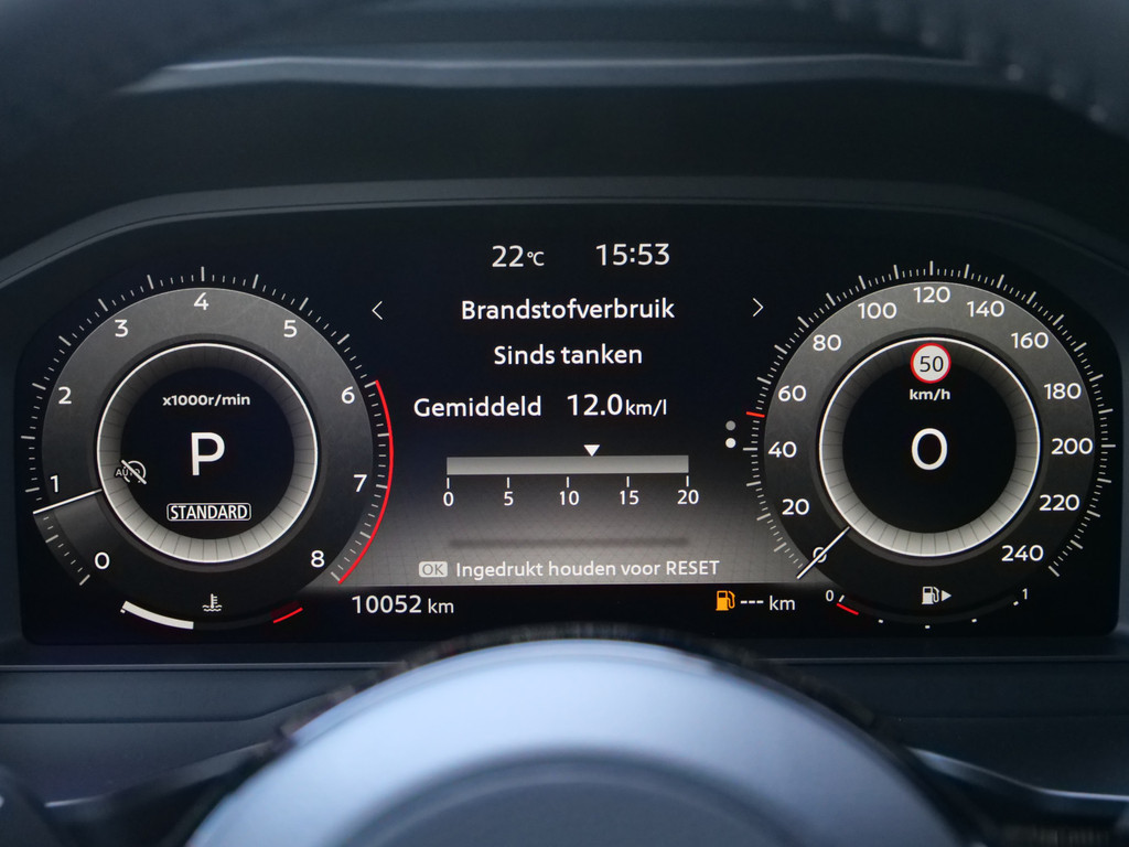 Begeef u op de geweldige rit door de digitale wereld van mobiliteit waar alles wat u wenst voor comfort en veiligheid, wordt geprojecteerd op het digitale dashboard. De 360 graden camera op deze auto wordt verzorgd door vier geavanceerde camera's. Het biedt garantie van uitstekende beeldkwaliteit. Met adaptive cruise control houdt deze auto automatisch afstand tot uw voorligger. Filerijden? Doodvermoeiend. Daarom helpt de file assistent zo nodig een handje. Door automatisch afstand te houden, en te stoppen als uw voorligger stilstaat. Oliepeil, bandenspanning, sloten en andere functies zijn via een speciale app overal te checken dankzij Connected Services. Ook is de Nissan uitgerust met: navigatiesysteem, WIFI-hotspot, achteropkomend verkeer waarschuwing, kruisend verkeer detectie, automatische airconditioning en sportstuur met schakelpaddels.
