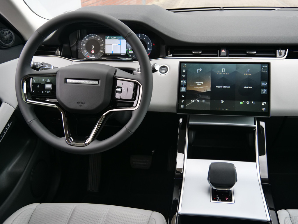 In één oogopslag zijn alle vitale functies afleesbaar dankzij het digitale dashboard. De 360 graden camera biedt een beter zicht bij slechte weersomstandigheden, waardoor u beter kan anticiperen op mogelijke gevaren. Adaptive cruise control houdt de ingestelde snelheid vast en houdt automatisch afstand tot uw voorligger. Van A naar B zonder omwegen: altijd uw eigen full map navigatiesysteem aan boord! Omdat u nu eenmaal niet overal ogen heeft, is deze Land Rover Range Rover Evoque voorzien van een achteropkomend verkeer waarschuwing die registreert wanneer de afstand tot uw achterligger te krap is. U bent in deze Land Rover ook voorzien van electronic climate control, sportstuur met schakelpaddels, draadloos opladen, DAB ontvangst, regensensor en automatisch dimmende binnenspiegel.