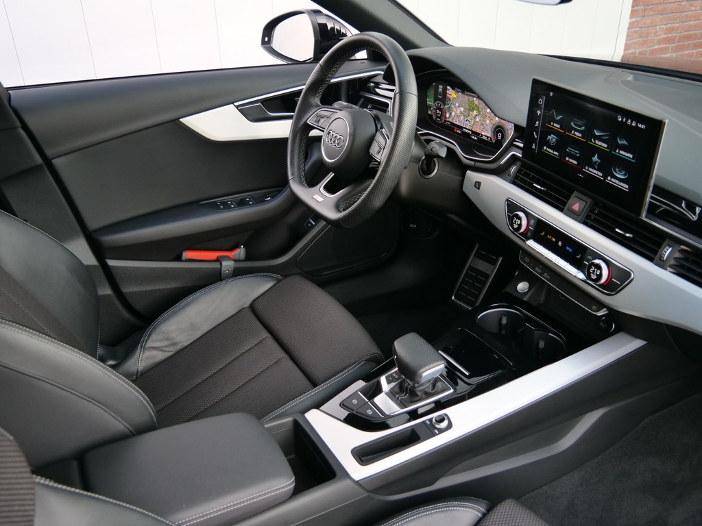 Het interieur van deze Audi A4 Limousine beschermt u als een veilige cocon. Het onderstel is ontworpen om de scherpste bochten en de slechtste wegen aan te kunnen en de motor reageert alert op ieder commando. Mag het een beetje exclusief en sportief? Mooi, want deze is uitgevoerd met S-Line styling. De aandrijving van deze Audi wordt verzorgd door een viercilinder benzinemotor en een automatische transmissie. Chauffeur en bijrijder zitten stabiel in de scherpe bochten door de sportstoelen. Bij de uitrusting van deze auto horen onder meer 19 inch lichtmetalen velgen, LED koplampen, sportonderstel, halflederen bekleding, warmtewerend glas en in delen neerklapbare achterbank.