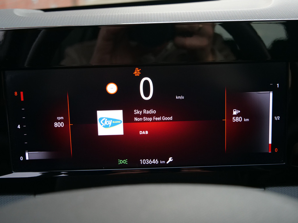 Een cockpit, een informatiecentrum... Wat is de cabine eigenlijk niet? Dankzij het digitale dashboard bent u van alles op de hoogte. De 360 graden camera op deze auto is een innovatieve functie die de obstakels rondom de auto in beeld brengt voor een optimaal zicht. Met adaptive cruise control houdt de auto zelfstandig afstand tot uw voorligger. Een veiligheidsverhogende optie waarmee u comfortabel onderweg bent. Aan boord: een uitstekend audiosysteem met DAB-radio: hoge kwaliteit en veel zenderkeus. Natuurlijk is er ook electronic climate control aanwezig. Met regensensor, keyless entry, automatisch dimmende binnenspiegel, lederen stuur en centrale deurvergrendeling met afstandsbediening is deze Opel helemaal compleet.