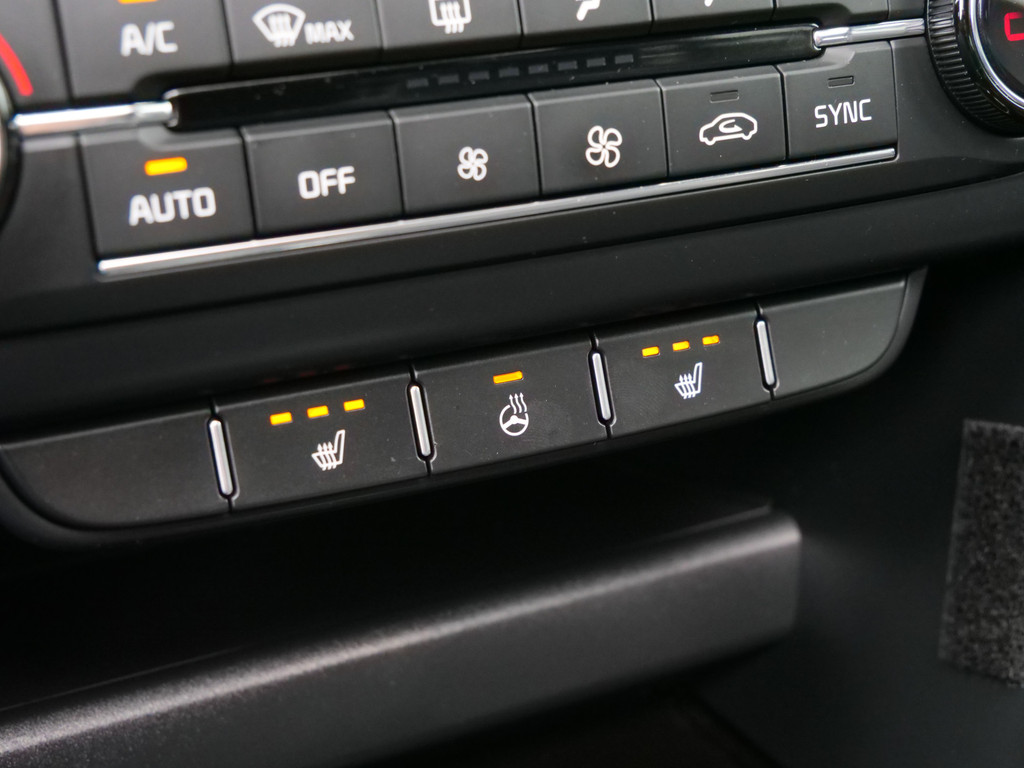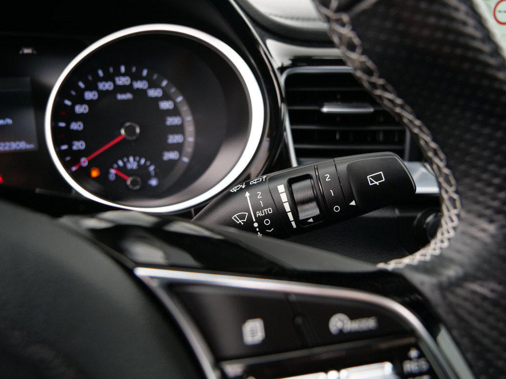 Strak inparkeren wordt een fluitje van een cent door de achteruitrijcamera. De hoorbare sensatie van het high performance audiosysteem is een ervaring op zich. Met de automatische airconditioning selecteert u de gewenste temperatuur. Het systeem doet de rest. Om de veiligheid onderweg te verhogen, heeft deze Kia zowel een automatisch inschakelbare verlichting als een regensensor aan boord, zodat hij zelf de verlichting en de ruitenwissers kan inschakelen. Natuurlijk is er ook cruise control aan boord, waarmee u meer ontspannen en zuiniger rijdt. Natuurlijk behoren dashboard met spraakbediening, full map navigatiesysteem, DAB ontvangst, sportstuurwiel, keyless entry en automatisch dimmende binnenspiegel ook tot de uitrusting van deze complete auto.