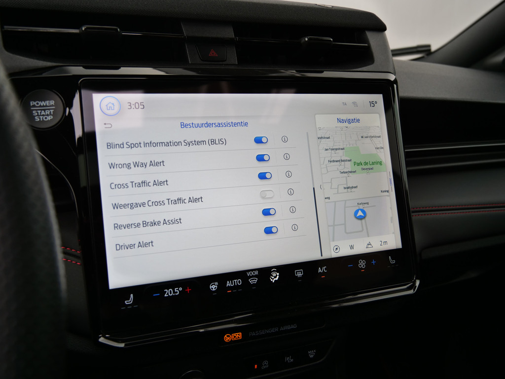 Alle functies voor een veilige en zuinige rit worden overzichtelijk weergegeven op het digitale dashboard. Een handige optie is de achteruitrijcamera. Achteruitrijden, inparkeren en manoeuvreren gaat gemakkelijker dan ooit. Als u de adaptive cruise control inschakelt, regelt de auto zelf de snelheid en de afstand tot de auto voor u. Als u regelmatig met een aanhanger of een fietsendrager op pad bent, is de afneembare trekhaak een praktische extra. Dankzij Connected Services heeft u overal en altijd uw dashboard op zak. Alle belangrijke functies zijn te checken via de app. U bent in deze Ford ook voorzien van dashboard met spraakbediening, Bang & Olufsen sound system, full map navigatiesysteem, automatische airconditioning, draadloos opladen en DAB ontvangst.