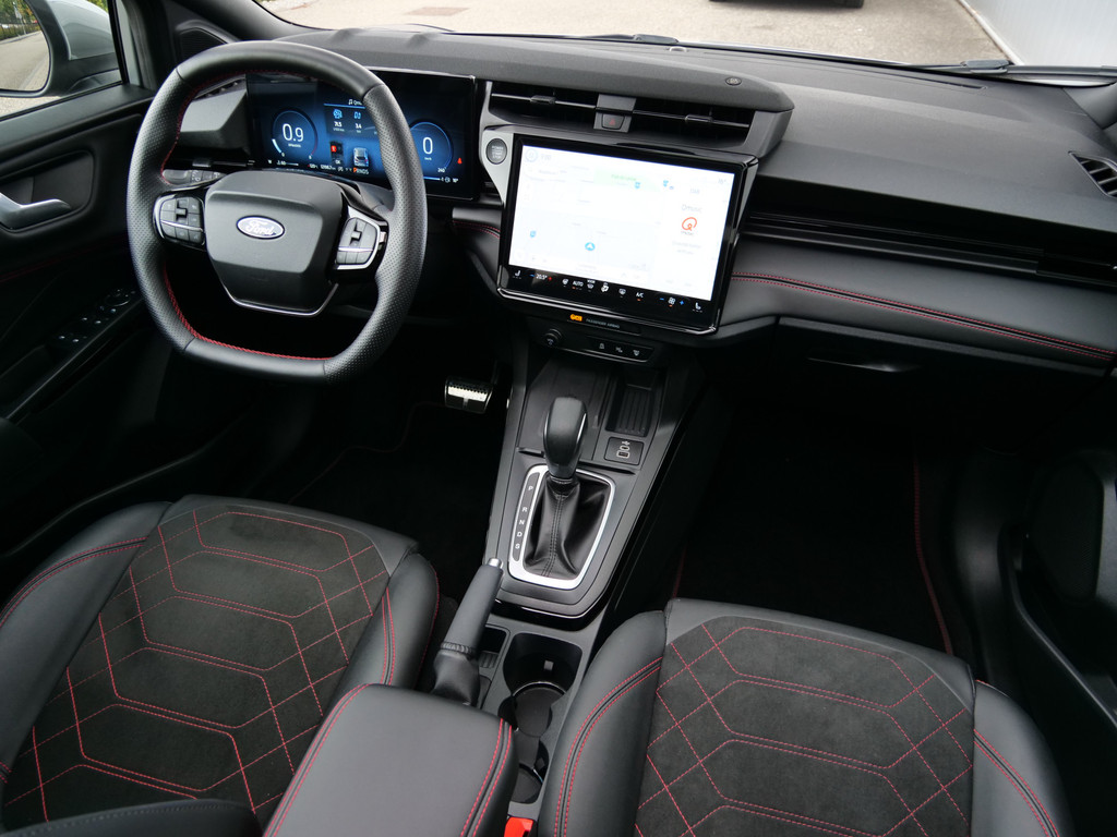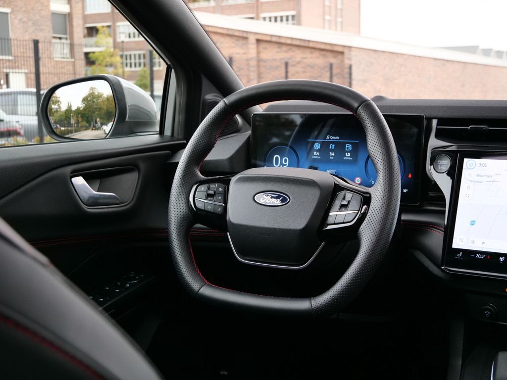 Alle functies voor een veilige en zuinige rit worden overzichtelijk weergegeven op het digitale dashboard. Een handige optie is de achteruitrijcamera. Achteruitrijden, inparkeren en manoeuvreren gaat gemakkelijker dan ooit. Als u de adaptive cruise control inschakelt, regelt de auto zelf de snelheid en de afstand tot de auto voor u. Als u regelmatig met een aanhanger of een fietsendrager op pad bent, is de afneembare trekhaak een praktische extra. Dankzij Connected Services heeft u overal en altijd uw dashboard op zak. Alle belangrijke functies zijn te checken via de app. U bent in deze Ford ook voorzien van dashboard met spraakbediening, Bang & Olufsen sound system, full map navigatiesysteem, automatische airconditioning, draadloos opladen en DAB ontvangst.