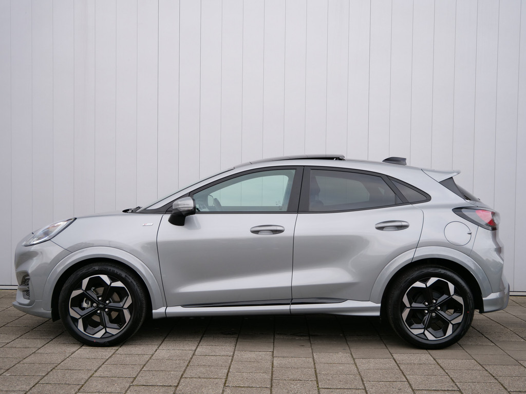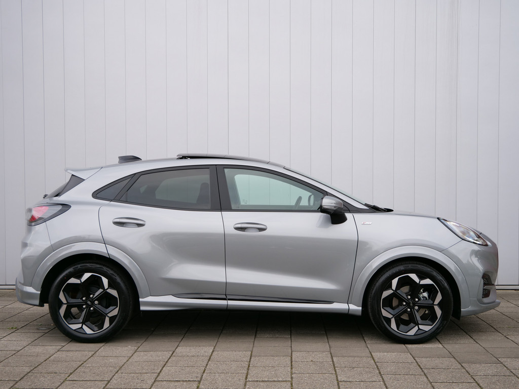 Bij het ontwerpen van de Ford Puma stonden uw comfort en uw veiligheid centraal. De auto is van het bouwjaar 2025 en is van de eerste eigenaar. Een driecilinder benzinemotor en een automatische transmissie zorgen voor de uitstekende prestaties van deze auto. Voorin is het 's winters genieten met de verwarmbare voorstoelen voor zowel bestuurder als bijrijder. Laat die bochten maar komen! In de sportstoelen zitten u en uw bijrijder altijd goed! Wat een heerlijk ruim gevoel en zoveel licht geeft dat glazen panoramadak! Nooit meer koude handen of koude vingers in de auto. Stuurverwarming zorgt ervoor dat het stuur behaaglijk warm aanvoelt. Natuurlijk behoren LED koplampen, zwarte hemelbekleding, donker getint glas achter, in delen neerklapbare achterbank, LED-achterlichten en verstelbare lendensteunen ook tot de uitrusting van deze complete auto.
