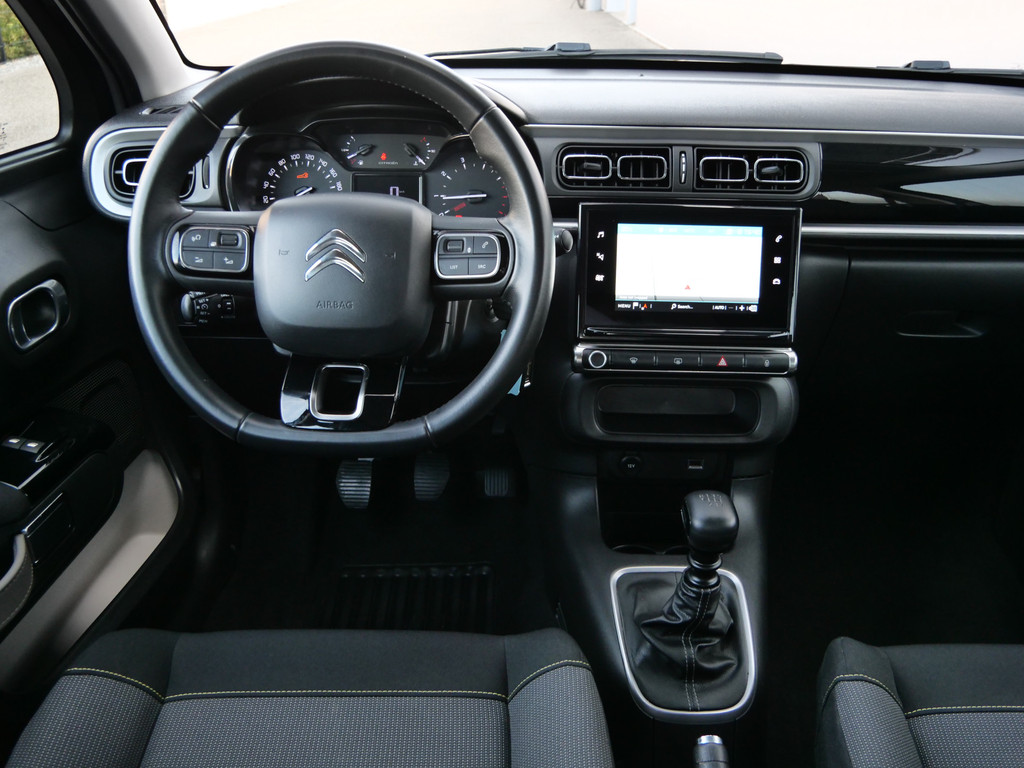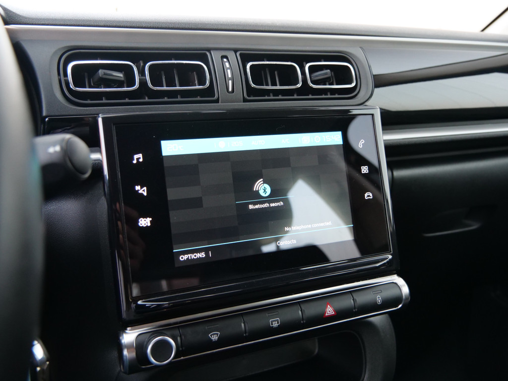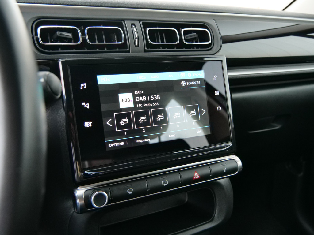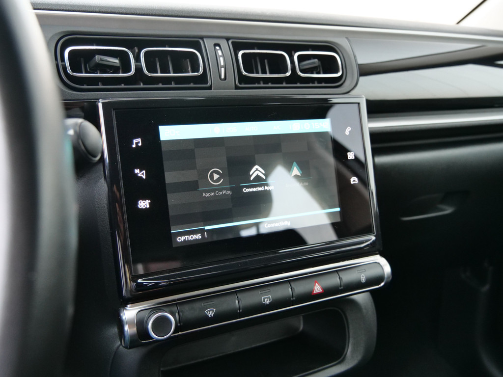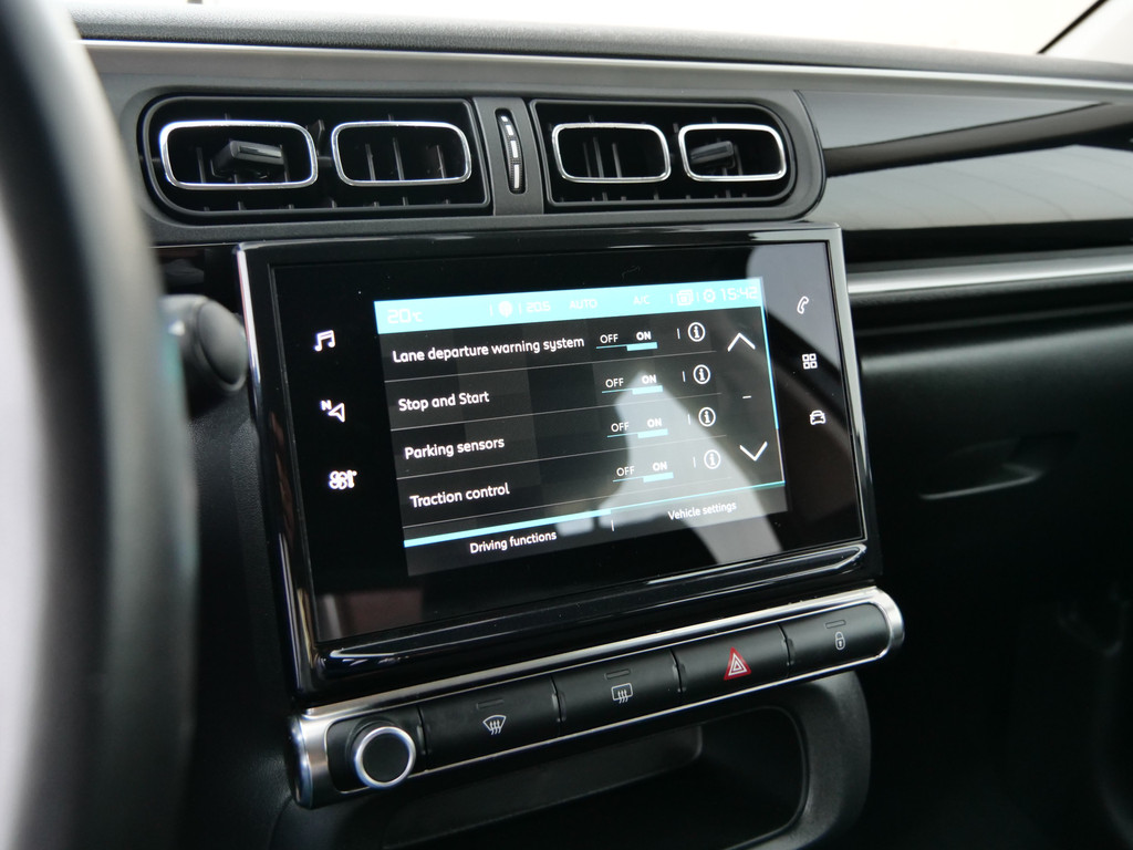 Dankzij Connected Services weet u precies waar uw auto geparkeerd staat. Ook andere functies, zoals bandenspanning en brandstofniveau, zijn via de app altijd onder handbereik. Onderweg kunt u veilig genieten van het audiosysteem met DAB-radio en het full map navigatiesysteem. Want in deze Citroën bedient u ze vanaf het stuurwiel. Automatische airconditioning regelt volautomatisch de temperatuur. U kiest de gewenste temperatuur en het systeem doet de rest. Parkeersensoren zijn een handig hulpmiddel om parkeerschades te voorkomen. Natuurlijk is een complete auto als deze ook voorzien van sensoren die de omgeving in de gaten houden. Deze Citroën heeft niet alleen een automatisch inschakelbare verlichting aan boord, maar ook een regensensor. Met cruise control, centrale deurvergrendeling met afstandsbediening, boordcomputer en verstelbaar stuur is deze Citroën helemaal compleet.