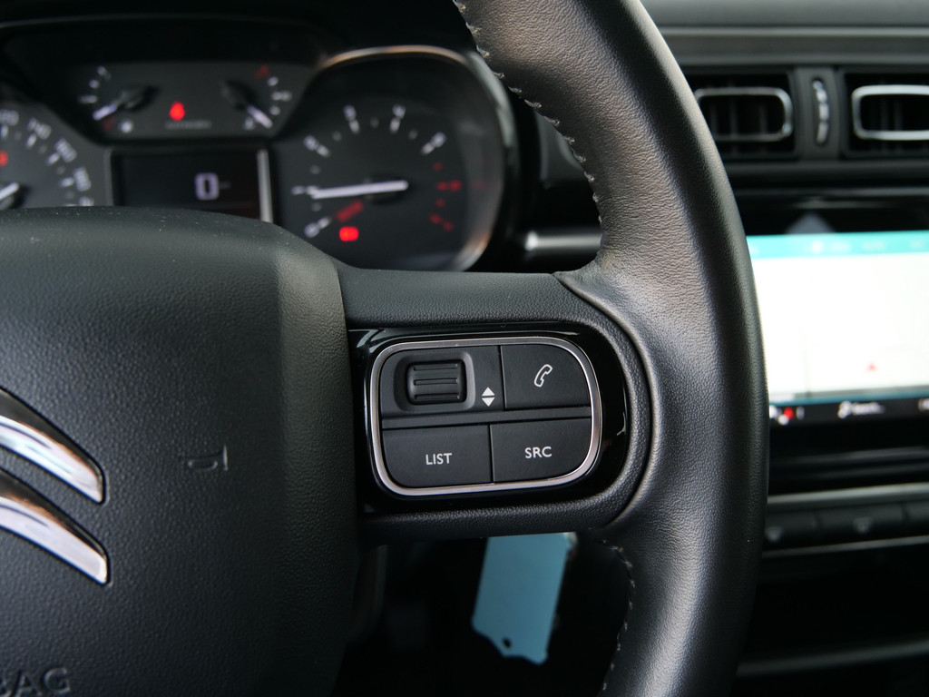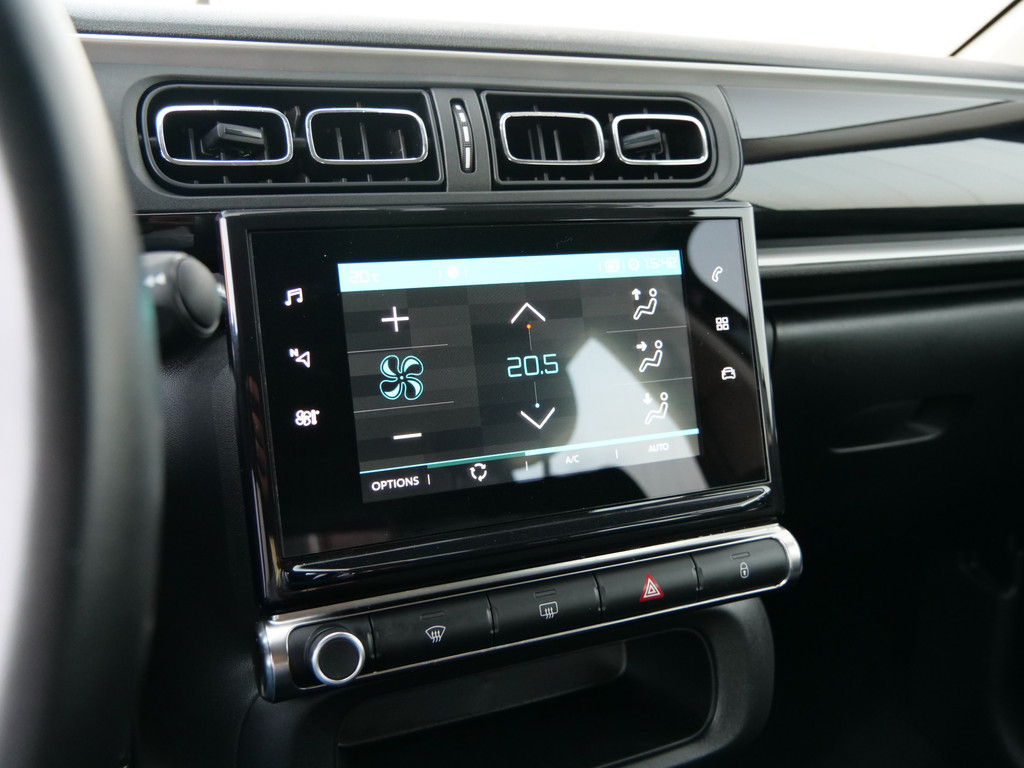 Dankzij Connected Services weet u precies waar uw auto geparkeerd staat. Ook andere functies, zoals bandenspanning en brandstofniveau, zijn via de app altijd onder handbereik. Onderweg kunt u veilig genieten van het audiosysteem met DAB-radio en het full map navigatiesysteem. Want in deze Citroën bedient u ze vanaf het stuurwiel. Automatische airconditioning regelt volautomatisch de temperatuur. U kiest de gewenste temperatuur en het systeem doet de rest. Parkeersensoren zijn een handig hulpmiddel om parkeerschades te voorkomen. Natuurlijk is een complete auto als deze ook voorzien van sensoren die de omgeving in de gaten houden. Deze Citroën heeft niet alleen een automatisch inschakelbare verlichting aan boord, maar ook een regensensor. Met cruise control, centrale deurvergrendeling met afstandsbediening, boordcomputer en verstelbaar stuur is deze Citroën helemaal compleet.