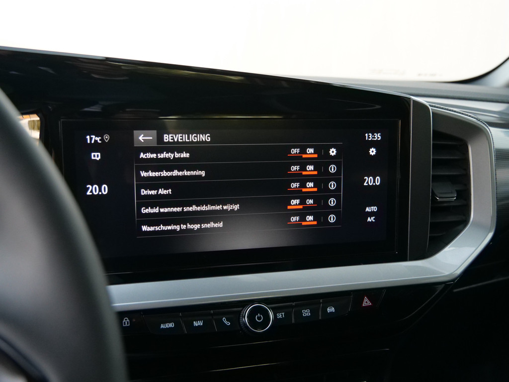 Elektronische veiligheidsvoorzieningen helpen u onderweg om de situatie op de weg te beoordelen. Deze systemen waarschuwen u als er een riskante situatie ontstaat, en kunnen in bepaalde gevallen ook zelf ingrijpen. In het instrumentarium ziet u tijdens de rit ook de belangrijkste verkeersborden aangegeven, die de auto automatisch voor u leest. Het Lane-keeping systeem registreert permanent of u binnen de lijnen van de rijstrook blijft; dwaalt u onbedoeld af, dan waarschuwt het systeem en corrigeert de koers. Forward collision warning is een automatisch waarschuwingssysteem dat direct in werking treedt bij gevaar voor een kop-staartbotsing. In deze Opel vinden we verder een hill hold functie, vermoeidheidsherkenning, autonoom remsysteem en bandenspanningcontrolesysteem.