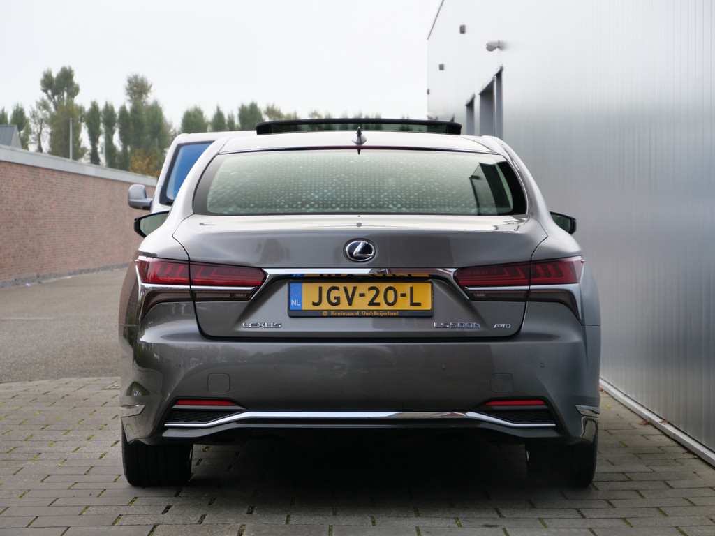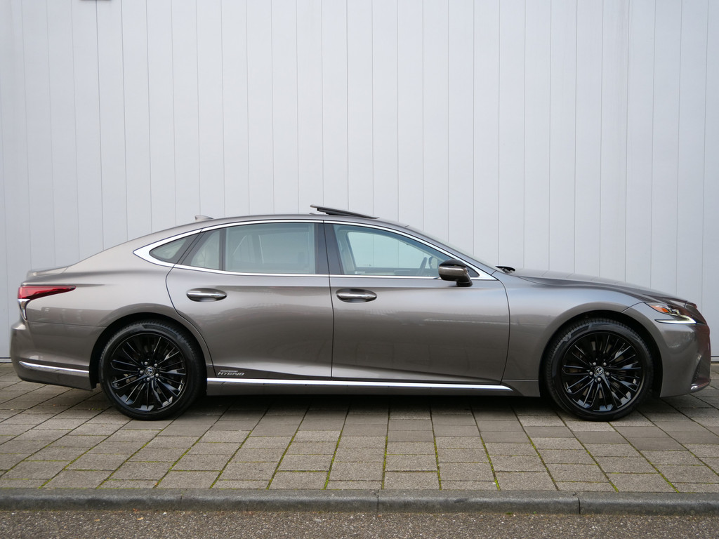 Dankzij de 360 graden camera op de auto, wordt manoeuvreren in smalle straatjes ineens veel eenvoudiger. Met adaptive cruise control houdt de auto zelfstandig afstand tot uw voorligger. Een veiligheidsverhogende optie waarmee u comfortabel onderweg bent. Soms wil je goed geluid kunnen voelen! Het high performance audiosysteem bedient u op uw wenken. Deze Lexus LS denkt vooruit als u van plan bent af te slaan. De kruisend verkeer detectie calculeert en analyseert het tegemoetkomende verkeer en waarschuwt als het risico op aanrijding bestaat. De sensoren van de achteropkomend verkeer waarschuwing registreren wat er gebeurt in de dode hoeken en achter u. U krijgt meteen een waarschuwing als u een achterligger over het hoofd ziet. De uitrusting van deze Lexus is met full map navigatiesysteem, electronic climate control, schakelpaddles aan het stuur, regensensor, keyless entry en automatisch dimmende buitenspiegels behoorlijk compleet.