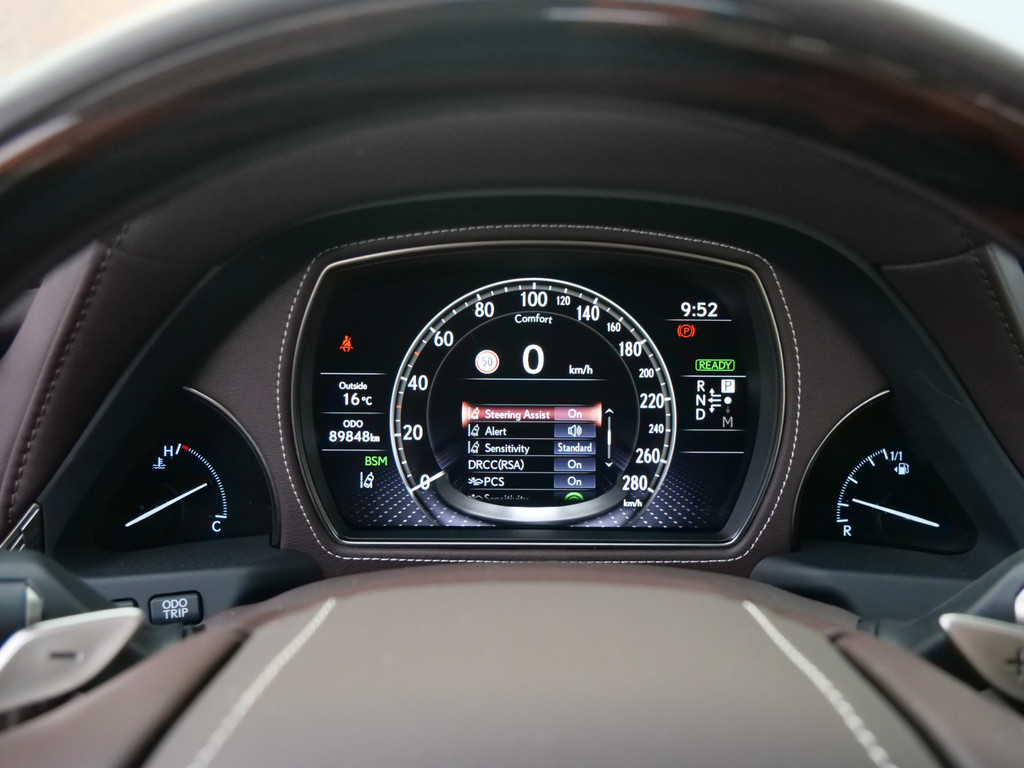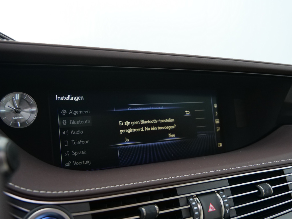 Zoals u mag verwachten van deze Lexus LS is hij uitgerust met een reeks aan actieve veiligheidssystemen. Belangrijk voor uw veiligheid en die van uw passagiers is de verkeersbord-detectie in deze auto. Het Lane-keeping systeem garandeert dat u zich niet onverhoeds buiten de lijnen van de rijstrook begeeft. Veel aanrijdingen bestaan uit kop-staartbotsingen. De forward collision warning reduceert dat risico aanzienlijk. U bent mede dankzij head-up display, dodehoekdetectie, hill hold functie, autonoom remsysteem en bandenspanningcontrolesysteem steeds veilig onderweg.