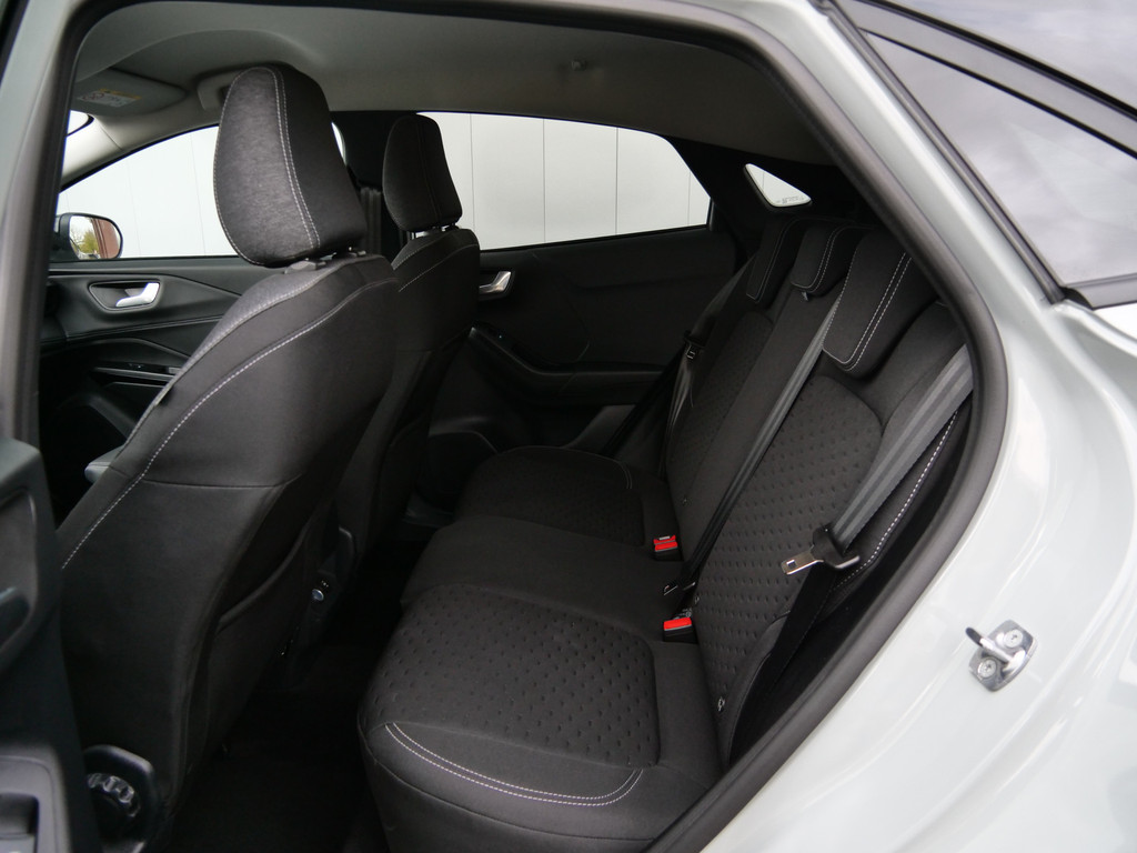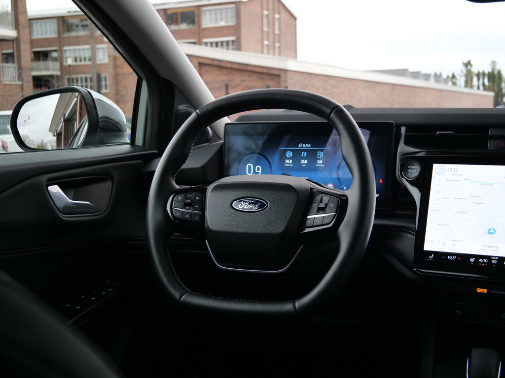 Alles vrij achter? De achteruitrijcamera laat het meteen zien. Adaptive cruise control is een comfortabele en veilige optie. Het systeem reguleert de snelheid en houdt automatisch afstand tot uw voorligger. Met Connected Services wordt iedere rit nóg veiliger. Voor een veilige rit is het belangrijk dat uw handen het stuur vasthouden en uw ogen gefocust blijven op de weg; daarom kunt u het audiosysteem, met DAB-ontvangst en full map navigatiesysteem bedienen met het stuurwiel of via spraakbediening. Zoals van een eigentijdse auto verwacht mag worden, is deze Ford Puma voorzien van een draadloze oplaadmogelijkheid voor telefoons. De Ford is standaard voorzien van: achteropkomend verkeer waarschuwing, airconditioning, lederen stuur, centrale deurvergrendeling met afstandsbediening en boordcomputer.