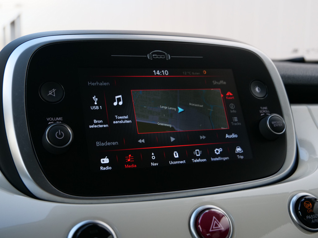 De nieuwste veiligheidssystemen komen in deze Fiat 500 X Cross samen. Verkeersbord-detectie herkent verkeersborden en toont deze op het instrumentarium van de auto. Met het Lane-keeping systeem gaat u nooit onbedoeld over de streep.