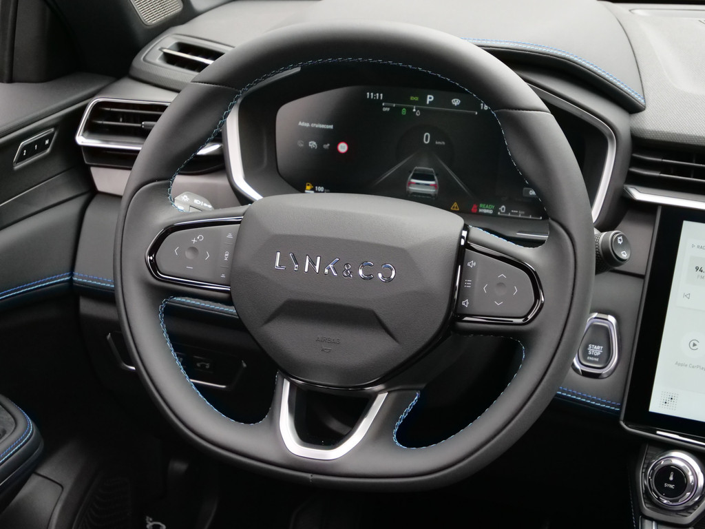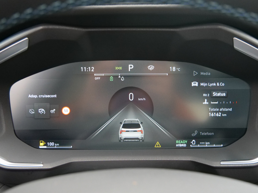 Met het digitale dashboard kunt u de cockpit-interface naar uw voorkeur instellen. Adaptive cruise control houdt de ingestelde snelheid vast en houdt automatisch afstand tot uw voorligger. Na een lange werkdag in de file: daar zit niemand op te wachten. Gelukkig helpt de file assistent een handje. Het radarsysteem meet de ruimte tot de voorligger en bewaakt de juiste afstand. Stilstaan? Dan remt en stopt de auto vanzelf. Het is veiliger om altijd uw ogen op de weg te houden en uw handen aan het stuur; daarom is dit voertuig uitgerust met een audio-installatiesysteem met DAB-ontvangst en een full map navigatiesysteem dat kan worden bediend via het stuurwiel of spraakbediening. Geen onnodige spaghetti van oplaadsnoertjes voor de smartphone: deze Lynk & Co 01 heeft een draadloze oplaadmogelijkheid voor telefoons. En dan is deze auto ook nog eens voorzien van WIFI-hotspot, achteropkomend verkeer waarschuwing, automatische airconditioning, parkeersensoren achter, regensensor en keyless entry.