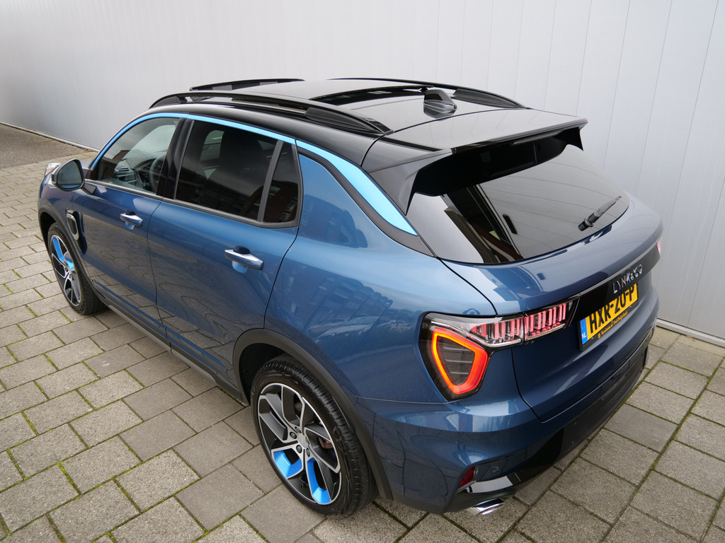 Hij is compact en veelzijdig. Zijn stijlvolle design maakt indruk, en het ruime interieur van de Lynk & Co 01 biedt comfort voor het hele gezin. Voor de aandrijving van deze SUV zorgen een driecilinder benzinemotor en een automatische transmissie. Voorin is het 's winters genieten met de verwarmbare voorstoelen voor zowel bestuurder als bijrijder. De achterklep opent automatisch met een druk op de knop. Handig als u met volle handen staat. Zicht, licht en toch dicht! Een geweldige rijervaring met het glazen panoramadak. Bij de uitrusting van deze Lynk & Co horen onder meer 20 inch lichtmetalen velgen, LED koplampen, dakspoiler, in delen neerklapbare achterbank, LED-achterlichten en verstelbare lendensteunen.