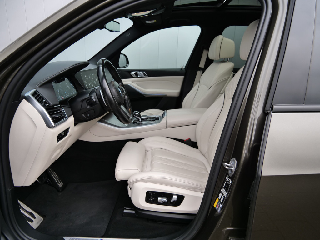 Als u gaat voor kwaliteit zonder compromis, dan is deze BMW X5 een auto voor u. De aandrijving komt voor rekening van een benzinemotor en een automatische transmissie. De luchtvering biedt veel pluspunten, variërend van optimaal wegcontact en aerodynamica, tot en met constante rijhoogte en uitstekende demping van oneffenheden. Van de diverse pluspunten is ook het lederen interieur het noemen waard. Doe maar luxe! Neem plaats in de verwarmbare voorstoelen en voel de weldaad in koude dagen. Scherpe bochten, pittige acceleraties? In de sportstoelen blijft u altijd in positie. Wat een licht geeft dat glazen elektrisch bedienbare panoramadak. De elektrisch bedienbare achterklep opent met een druk op de knop. Ook 20 inch lichtmetalen velgen, LED-koplampen, BMW M-sportpakket, adaptief dempingsysteem, donker getint glas achter en in delen neerklapbare achterbank horen tot de voorzieningen op deze auto.