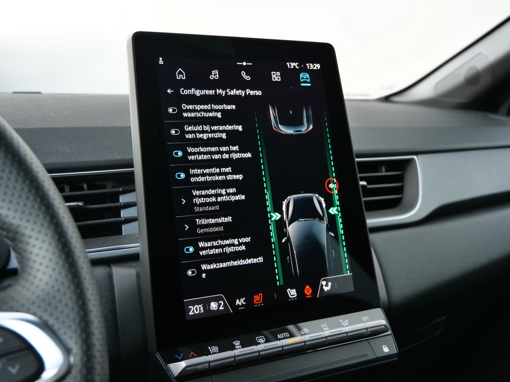 De Renault Captur is uw trouwe partner onderweg, want hij houdt continu voor u de situatie op en om de weg in de gaten. Volautomatische veiligheidssystemen kunnen daarbij ingrijpen om u voor gevaarlijke situaties te behoeden. Het Lane-keeping systeem zorgt voor een automatisch constante positie binnen de rijstrook. Afdwalen is uitgesloten. De sensor van het forward collision warning-systeem registreert permanent de afstand tot voorliggers en grijpt in als een botsing dreigt. Het laatste wat u wilt is dat u achter het stuur indommelt. Om dat te voorkomen is deze auto uitgerust met vermoeidheidsherkenning. De auto is ook uitgerust met hill hold functie, brake assist en bandenspanningcontrolesysteem.