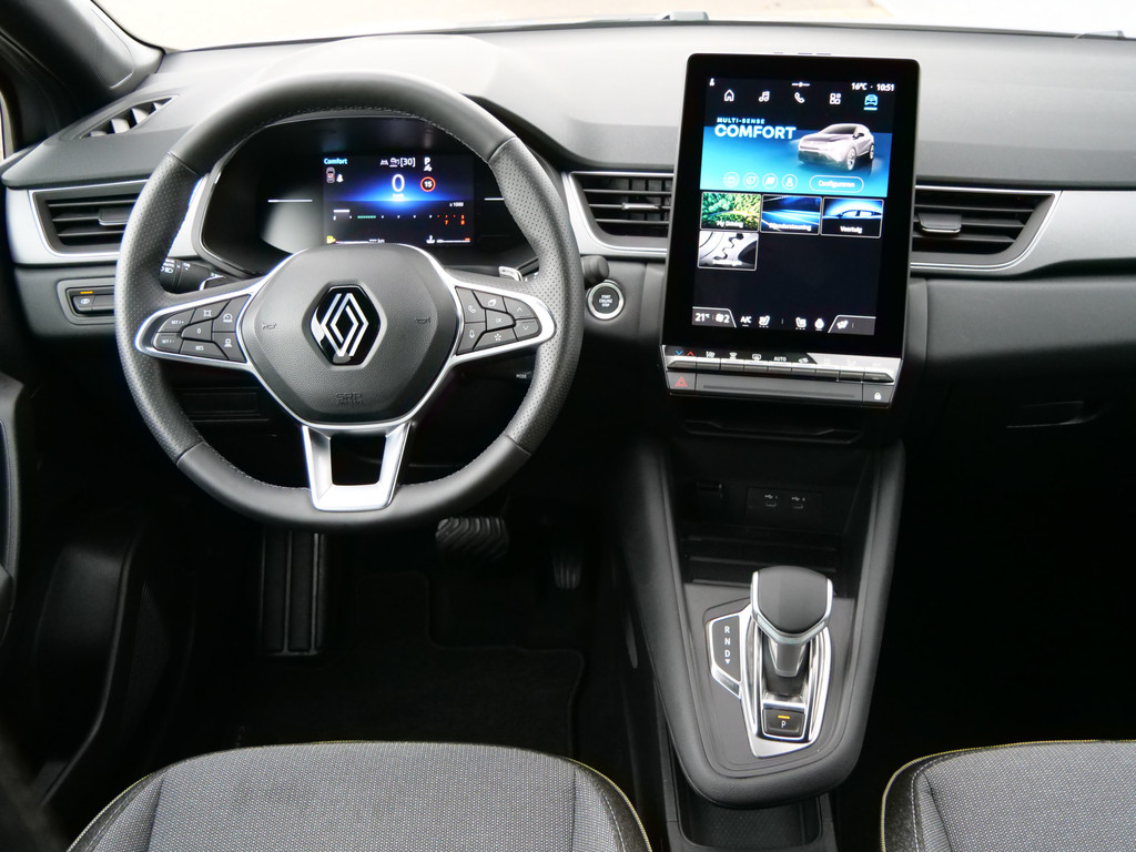 Snelheid, brandstofinfo, noem maar op. Het digitale dashboard houdt u permanent op de hoogte. Goed en overzichtelijk. Met de achteruitrijcamera ziet u wat er achter de auto gebeurt. Zo rijdt u moeiteloos achteruit. Met adaptive cruise control houdt deze auto automatisch afstand tot uw voorligger. Het spreekt voor zich dat een auto als deze ook van electronic climate control is voorzien. Even de smartphone erin klikken en de draadloze telefoonlader zorgt vanzelf voor nieuwe energie. Met DAB ontvangst, regensensor, keyless entry, automatisch dimmende binnenspiegel, boordcomputer en verstelbaar stuur is deze Renault helemaal compleet.