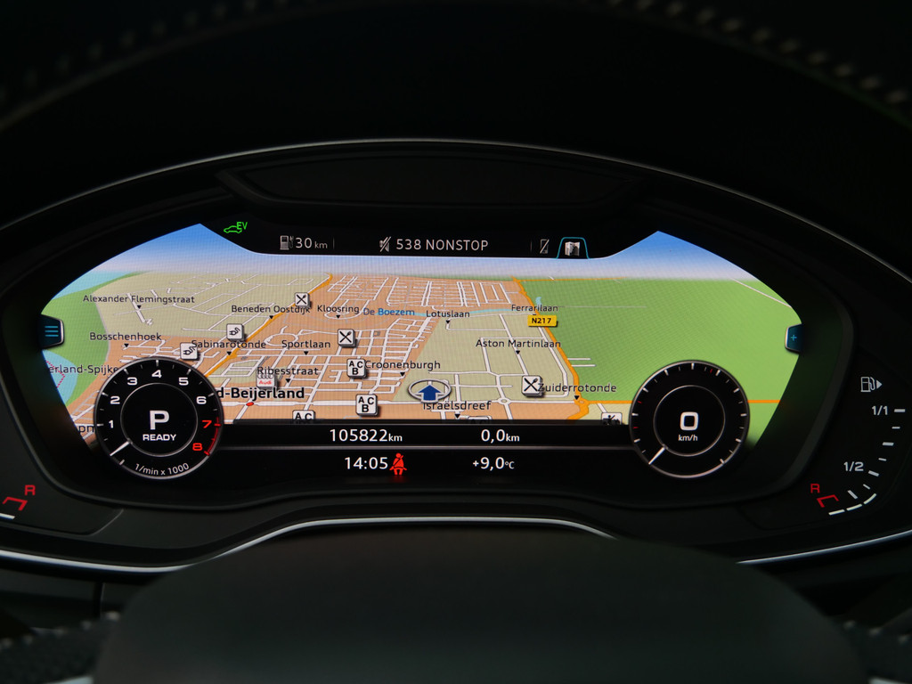 Met het digitale dashboard van deze auto is de aanpassing van uw cockpitinterface een fluitje van een cent. Met de achteruitrijcamera ziet u precies wat er achter de auto gebeurt. Als u de adaptive cruise control inschakelt, regelt de auto zelf de snelheid en de afstand tot de auto voor u. Uw smartphone is tegenwoordig de sleutel tot heel veel. Ook voor deze auto. Remote services, noemen we dat. Waar u ook bent, contact houden is een eitje. Qua muziekbeleving onderweg gaat deze auto ook een stevige stap verder dankzij het high performance audiosysteem. Natuurlijk behoren navigatiesysteem met harde schijf, WIFI-hotspot, automatische airconditioning, schakelpaddles aan het stuur, draadloos opladen en DAB ontvangst ook tot de uitrusting van deze complete auto.