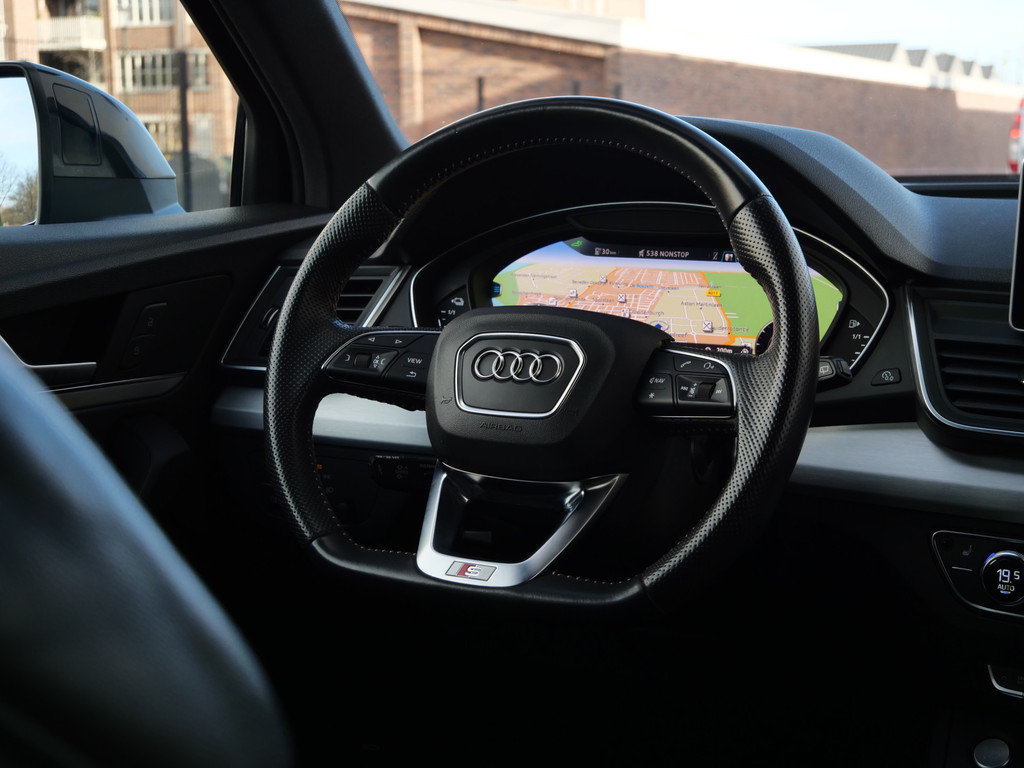 U merkt het aan de look and feel van deze auto: dit is kwaliteit. De Audi Q5 is ontworpen volgens de Duitse opvattingen van kwaliteit en degelijkheid, maar biedt tegelijk een hoge mate van comfort en uitstekende rijkwaliteiten. Een beetje meer aandacht en een stoere uitstraling? Daar zorgt de S-Line styling voor. Een viercilinder benzinemotor en een automatische transmissie zorgen voor de uitstekende prestaties van deze auto. Op zelfs de koudste ochtend biedt de stoelverwarming een heerlijk welkom. De elektrische achterklep opent met een druk op de knop, zodat u gemakkelijk toegang heeft tot de bagageruimte. In deze auto profiteert u onder andere ook van: 20 inch lichtmetalen velgen, LED koplampen, sportonderstel, adaptief dempingsysteem, warmtewerend glas en in delen neerklapbare achterbank.