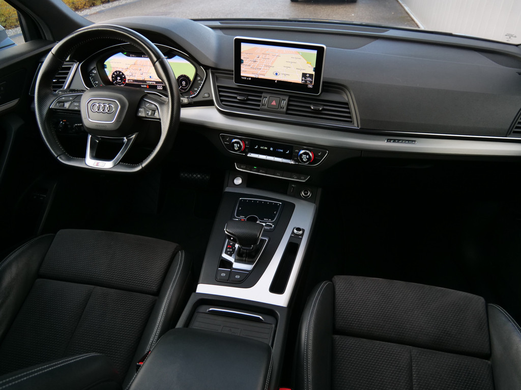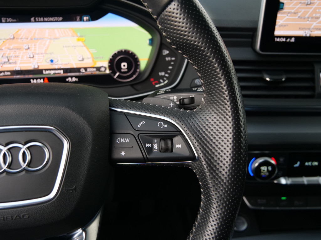 U merkt het aan de look and feel van deze auto: dit is kwaliteit. De Audi Q5 is ontworpen volgens de Duitse opvattingen van kwaliteit en degelijkheid, maar biedt tegelijk een hoge mate van comfort en uitstekende rijkwaliteiten. Een beetje meer aandacht en een stoere uitstraling? Daar zorgt de S-Line styling voor. Een viercilinder benzinemotor en een automatische transmissie zorgen voor de uitstekende prestaties van deze auto. Op zelfs de koudste ochtend biedt de stoelverwarming een heerlijk welkom. De elektrische achterklep opent met een druk op de knop, zodat u gemakkelijk toegang heeft tot de bagageruimte. In deze auto profiteert u onder andere ook van: 20 inch lichtmetalen velgen, LED koplampen, sportonderstel, adaptief dempingsysteem, warmtewerend glas en in delen neerklapbare achterbank.