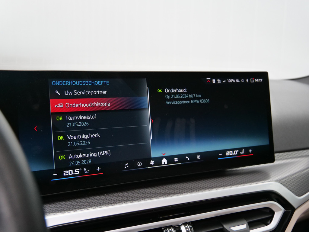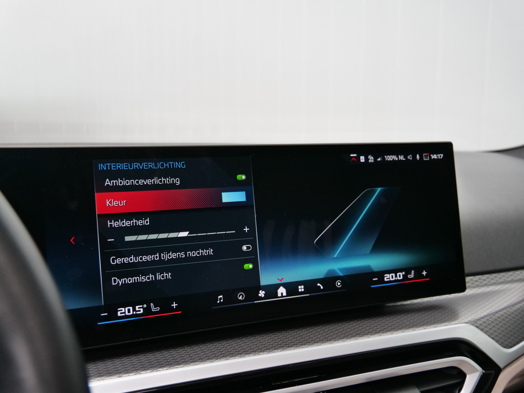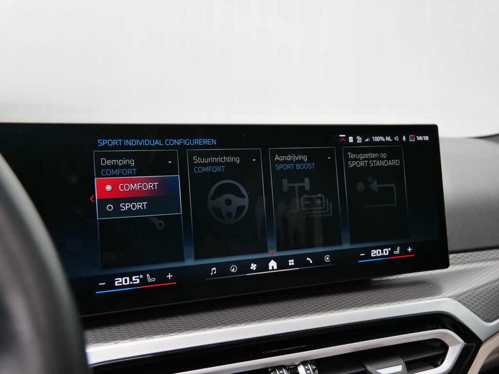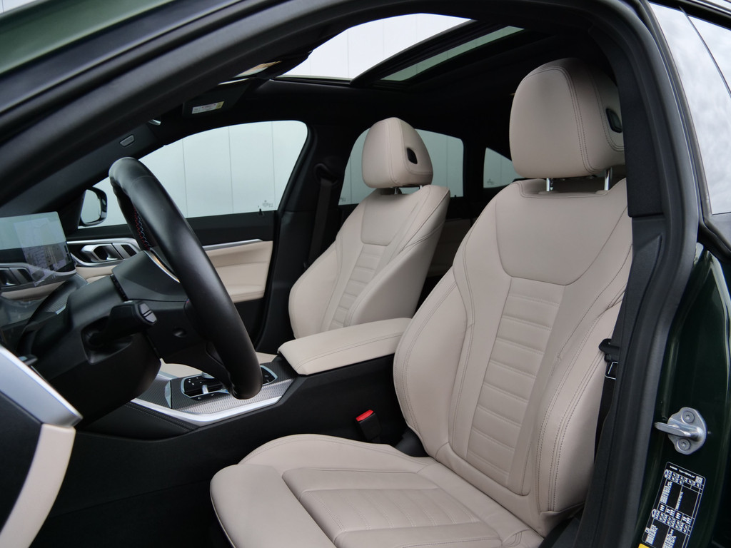Het maakt niet uit of u voor de vormgeving of voor de elektrische aandrijving valt. Met de BMW i4 zit u altijd goed. Met de elektromotor zoeft u fluisterzacht over de weg. Een krachtige motor geeft deze auto zijn sportieve prestaties. De auto is voorzien van leren bekleding - een fraaie en sfeerverhogende extra. In de verwarmbare voorstoelen zitten is elke keer een welkom gevoel. Goeie looks? Jazeker! Maar de sportstoelen zorgen ook voor een goed gesteunde en comfortabele zit. Het daglicht valt in overvloed via het elektrisch bediende panoramadak op het fraaie interieur. De achterklep opent automatisch met een druk op de knop. Handig als u met volle handen staat. Tot de voorzieningen van deze auto behoren 19 inch lichtmetalen velgen, LED koplampen, adaptief dempingsysteem, donker getint glas achter, in delen neerklapbare achterbank en LED-achterlichten.
