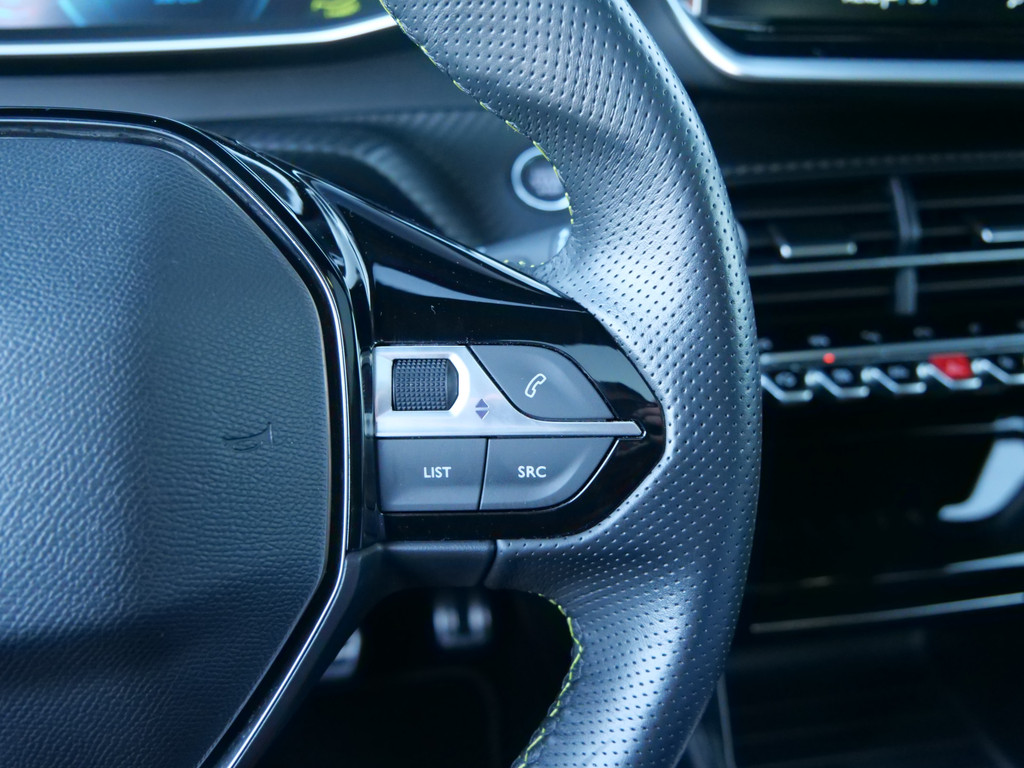 De Peugeot e-208 is ook voorzien van ADAS. Deze Advanced Driver Assistence Systems fungeren als extra ogen en oren: ze houden voor u de weg in de gaten en grijpen in wanneer dat nodig is. Een belangrijke bijdrage aan de veiligheid onderweg levert de verkeersbord-detectie. Indien u onbedoeld de rijstrook lijkt te verlaten, reageert het Lane-keeping systeem meteen en corrigeert. Elke auto heeft een of meer blinde vlekken. De actieve dodehoekdetectie waarschuwt als er gevaar voor een aanrijding bestaat. Verder is deze auto uitgerust met forward collision warning system, vermoeidheidsherkenning, autonoom remsysteem en bandenspanningcontrolesysteem.