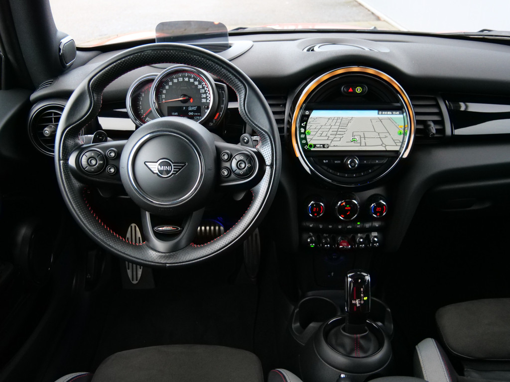 In één oogopslag heeft u alle benodigde functies onderweg in beeld, dankzij het slim ingedeelde digitale dashboard. Kommaar-kommaar-kommaar, aldus de achteruitrijcamera. Iedere centimeter vrije ruimte komt haarscherp in beeld. Schadevrij inparkeren maar! In deze auto klinkt uw favoriete muziek nog beter dankzij het high performance audiosysteem. Bij de luxe van deze auto hoort ook automatische airconditioning. Om de veiligheid onderweg te verhogen, heeft deze MINI zowel een automatisch inschakelbare verlichting als een regensensor aan boord, zodat hij zelf de verlichting en de ruitenwissers kan inschakelen. Natuurlijk behoren full map navigatiesysteem, schakelpaddles aan het stuur, DAB ontvangst, cruise control, keyless entry en automatisch dimmende binnenspiegel ook tot de uitrusting van deze complete auto.