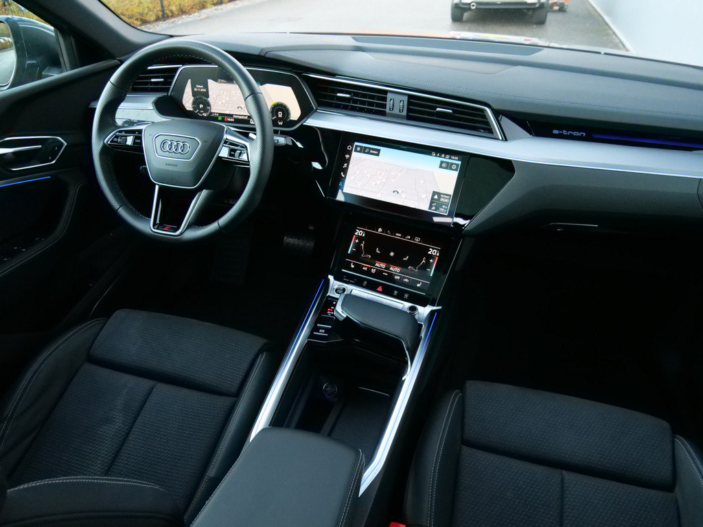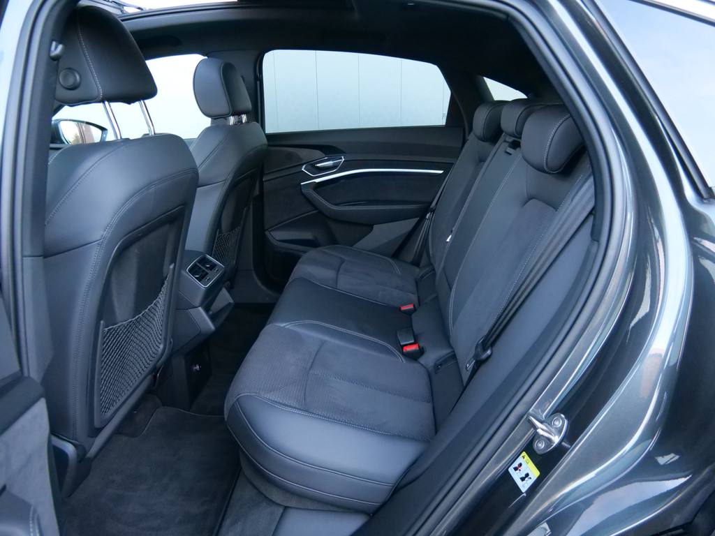 Duurzaam en dynamisch, de Audi e-tron Sportback verenigt deze twee uitersten in zich. Dit is een auto uit 2022, er staat 62985 kilometer op de teller. De actieradius van deze auto is ruim voldoende voor de meeste dagelijkse ritten en de laadtijd zal u nog verbazen. Met de kenmerkende S-Line styling toont deze Audi zich van zijn sportieve kant. Deze goed onderhouden auto is van de eerste eigenaar. Een krachtige motor geeft deze auto zijn sportieve prestaties. Van een cabrio heeft u alleen 's zomers plezier. Maar het elektrisch bediende glazen panorama dak van deze auto betekent het hele jaar genieten. Net zoals u elke dag het gemak ervaart van de elektrisch bedienbare achterklep. In de winter wordt het echt genieten met de stoelverwarming. De luchtvering absorbeert niet alleen oneffenheden in het wegdek, maar verhoogt ook aanzienlijk het rijplezier. Natuurlijk behoren 20 inch lichtmetalen velgen, LED koplampen, halflederen bekleding, adaptief dempingsysteem, warmtewerend glas en in delen neerklapbare achterbank ook tot de uitrusting van deze complete auto.