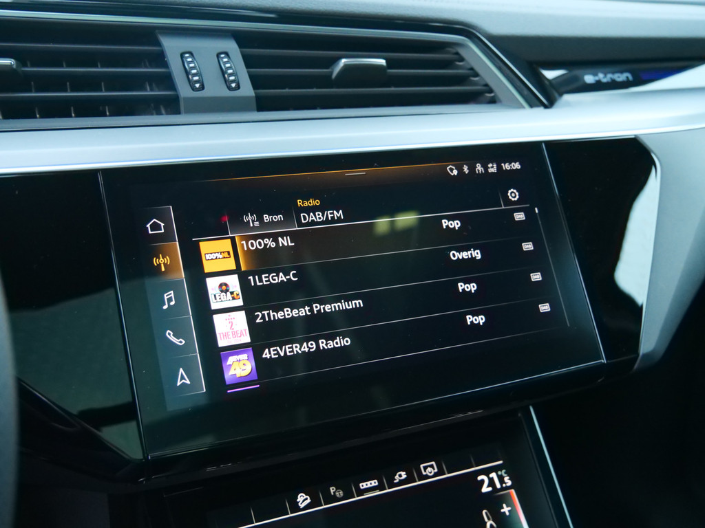 Als bestuurder van deze Audi bent u nooit alleen. U wordt onderweg bijgestaan door technologische hulpmiddelen die samen met u de weg in de gaten houden. Als het nodig is, grijpen ze zelfs in, door te remmen of bij te sturen. Deze Audi e-tron Sportback is ook behulpzaam als het gaat om een rechte koers. Het Lane-keeping systeem signaleert en corrigeert als u onbedoeld de rijstrooklijnen dreigt te overschrijden. Forward collision warning waarschuwt voor een kop-staart botsing. U bent mede dankzij brake assist en bandenspanningcontrolesysteem steeds veilig onderweg.
