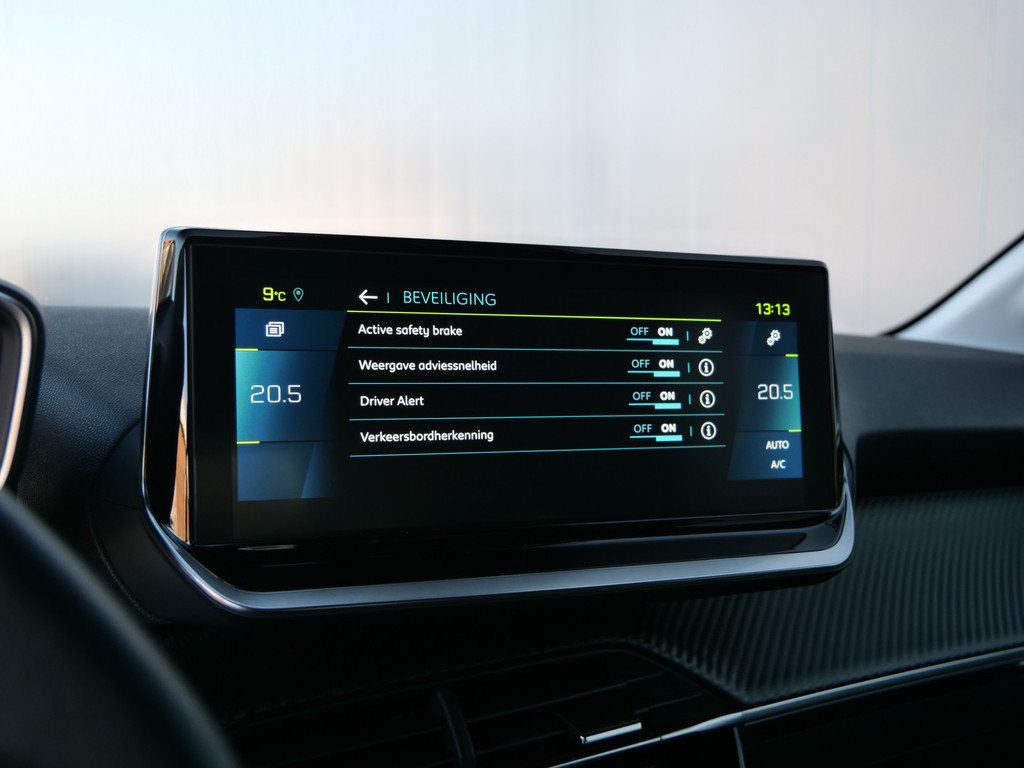 Als bestuurder van deze Peugeot bent u nooit alleen. U wordt onderweg bijgestaan door technologische hulpmiddelen die samen met u de weg in de gaten houden. Als het nodig is, grijpen ze zelfs in, door te remmen of bij te sturen. Dat de auto steeds meer taken van de bestuurder overneemt, merkt u bijvoorbeeld aan het systeem voor verkeersbord-detectie in deze Peugeot. Met het Lane-keeping systeem komt u nooit per ongeluk buiten de rijstrook. Mindert een voorligger onverwachts te veel vaart, dan komt de forward collision warning in actie en waarschuwt meteen. Dankzij veiligheidsvoorzieningen als vermoeidheidsherkenning, autonoom remsysteem en bandenspanningcontrolesysteem, bent u steeds veilig onderweg.