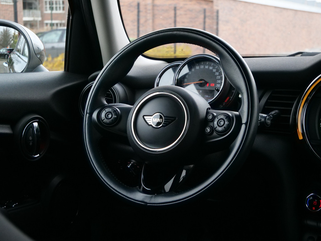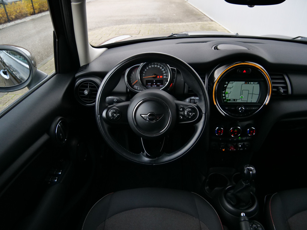 De bediening van het audiosysteem en het full map navigatiesysteem gebeurt met knoppen op het stuur. De automatische airconditioning zorgt voor een behaaglijk klimaat in de auto. Met de aanwezige parkeersensoren weet u altijd zeker of het past. In deze MINI kunt u zich concentreren op het verkeer, terwijl de auto de omgeving voor u in de gaten houdt. Een automatisch inschakelbare verlichting zorgt dat de verlichting aangaat als het donkerder wordt - in tunnels bijvoorbeeld - en de regensensor schakelt de ruitenwissers in als het nodig is. U hoeft er niets aan te doen. Nooit te snel, altijd constant: dat is het voordeel van de aanwezige cruise control. En deze auto heeft ook sportstuurwiel, centrale deurvergrendeling met afstandsbediening en boordcomputer als standaard uitrusting.