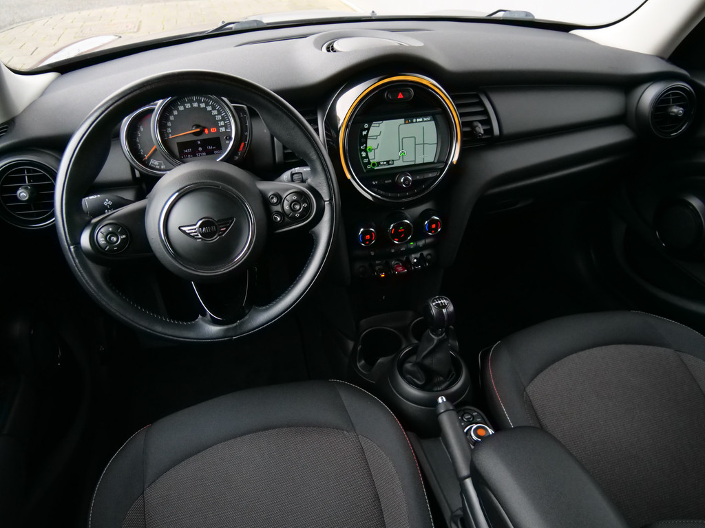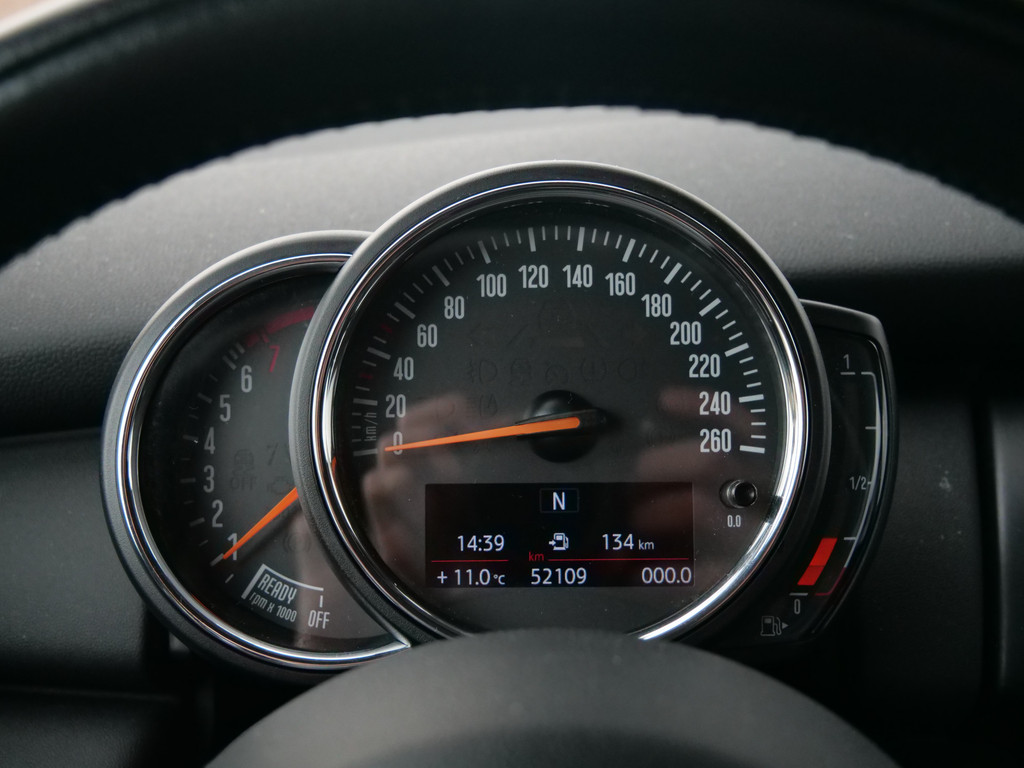 De bediening van het audiosysteem en het full map navigatiesysteem gebeurt met knoppen op het stuur. De automatische airconditioning zorgt voor een behaaglijk klimaat in de auto. Met de aanwezige parkeersensoren weet u altijd zeker of het past. In deze MINI kunt u zich concentreren op het verkeer, terwijl de auto de omgeving voor u in de gaten houdt. Een automatisch inschakelbare verlichting zorgt dat de verlichting aangaat als het donkerder wordt - in tunnels bijvoorbeeld - en de regensensor schakelt de ruitenwissers in als het nodig is. U hoeft er niets aan te doen. Nooit te snel, altijd constant: dat is het voordeel van de aanwezige cruise control. En deze auto heeft ook sportstuurwiel, centrale deurvergrendeling met afstandsbediening en boordcomputer als standaard uitrusting.
