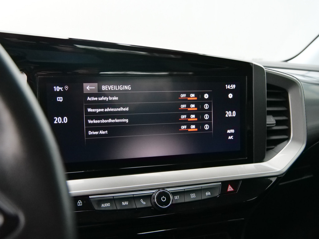 De nieuwste veiligheidssystemen komen in deze Opel Mokka samen. Onderweg fungeert de verkeersbord-detectie als het ware als uw bijrijder en attendeert u op de verkeersborden langs de weg. Het Lane-keeping systeem garandeert dat u zich niet onverhoeds buiten de lijnen van de rijstrook begeeft. In een noodsituatie waarschuwt forward collision warning bij een dreigende aanrijding met een voorligger. De auto is ook uitgerust met dodehoekdetectie, hill hold functie, vermoeidheidsherkenning, autonoom remsysteem en bandenspanningcontrolesysteem.