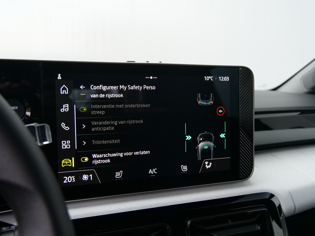 Alle benodigde informatie helder in beeld: het digitale dashboard is een geweldige rijhulp. Als u 'm vraagt 'hoe gaat het?' geeft deze auto zelf het antwoord. Via de app op uw smartphone. U checkt de meters waar u maar wilt, of activeert diverse functies alvast. Het comfort wordt verhoogd door de aanwezige automatische airconditioning. Onderweg wil je zo min mogelijk onnodige of afleidende handelingen verrichten. Vandaar ook de audiobediening op het stuur. U kunt bij het inparkeren natuurlijk niet aan alle kanten ogen hebben. Daarom is deze Renault 5 voorzien van parkeersensoren! De Renault is standaard voorzien van: regensensor, cruise control, keyless entry en verstelbaar stuur.