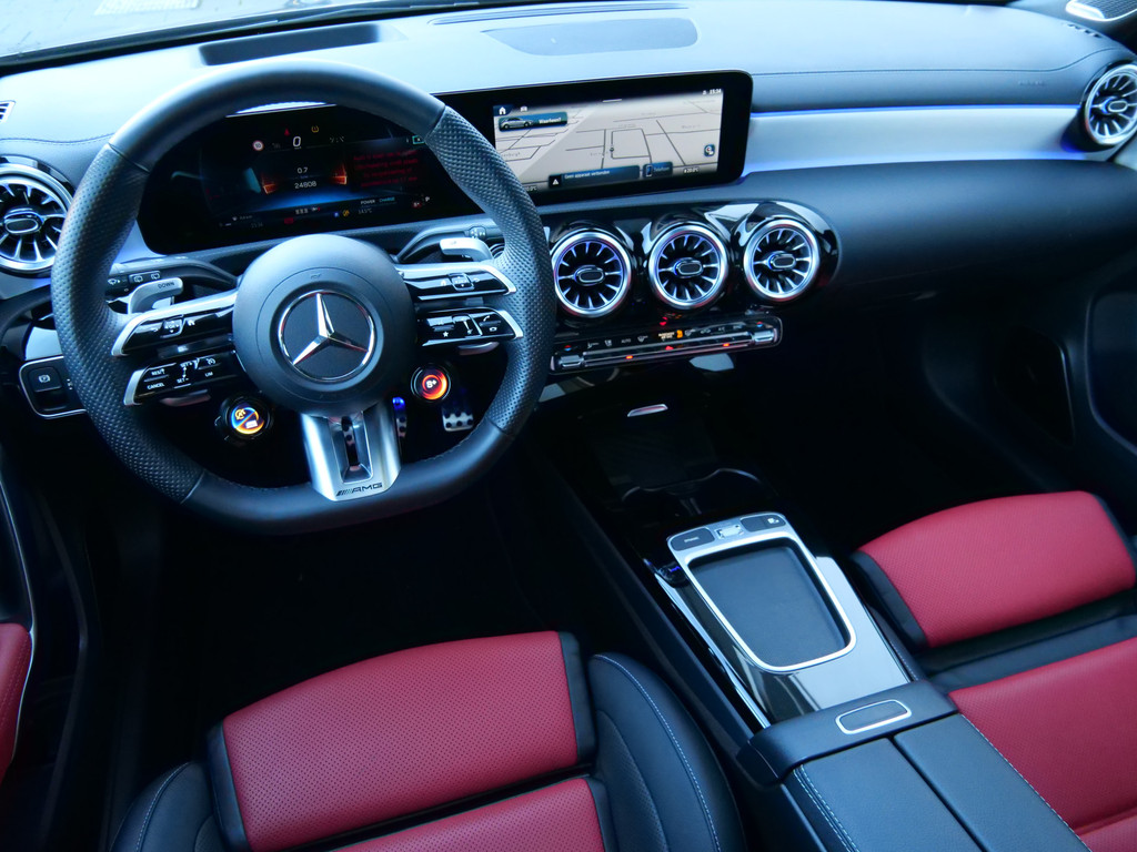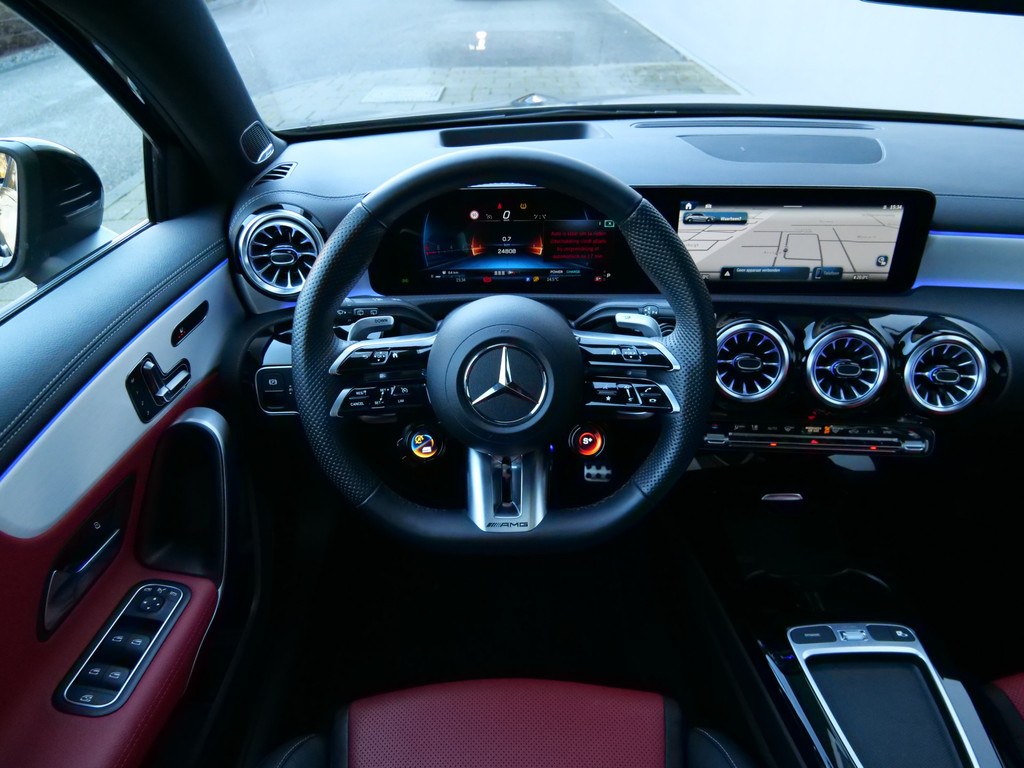 Het eigentijdse interieur wordt natuurlijk helemaal volmaakt met het digitale dashboard. Het gebruik van de 360 graden camera op deze auto helpt u bij het navigeren door lastige rijbanen en het drukke stadsverkeer. Dankzij Connected Services weet u precies waar uw auto geparkeerd staat. Ook andere functies, zoals bandenspanning en brandstofniveau, zijn via de app altijd onder handbereik. Een massieve sound of fluisterzachte verstaanbaarheid? Het high performance audiosysteem presteert op topniveau. De auto is voorzien van een draadloze telefoonlader, zodat uw smartphone tijdens de rit 100% wordt. De Mercedes-Benz is standaard voorzien van: dashboard met spraakbediening, navigatiesysteem met harde schijf, WIFI-hotspot, electronic climate control, schakelpaddles aan het stuur en DAB ontvangst.