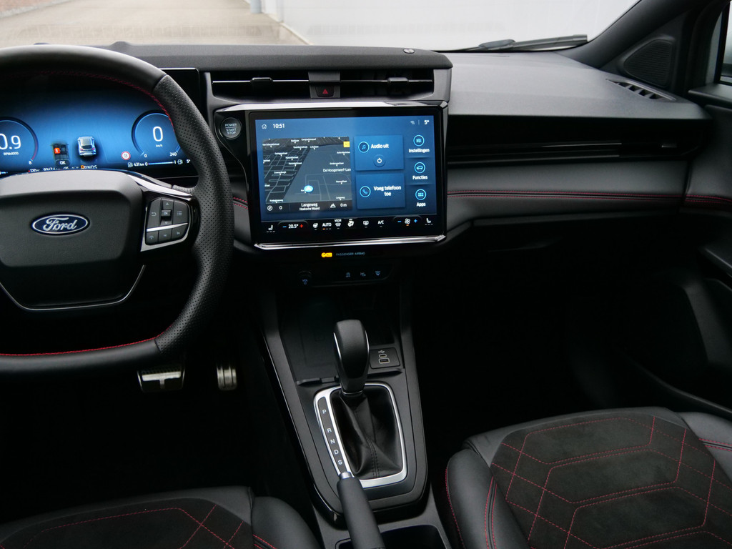 Rijfuncties worden glashelder en overzichtelijk weergegeven via het digitale dashboard. Nooit meer problemen bij achteruitrijden of inparkeren. De achteruitrijcamera houdt alles in de gaten! Adaptive cruise control houdt de ingestelde snelheid vast en houdt automatisch afstand tot uw voorligger. Als u regelmatig met een aanhanger of een fietsendrager op pad bent, is de afneembare trekhaak een praktische extra. U weet altijd hoe de auto eraan toe is dankzij Connected Services. Ook handig voor de garage en de wegenwacht. Even de app uitlezen en klaar! Ook is de Ford uitgerust met: dashboard met spraakbediening, Bang & Olufsen sound system, full map navigatiesysteem, automatische airconditioning, draadloos opladen en DAB ontvangst.