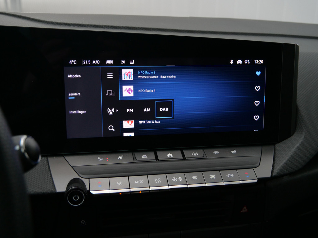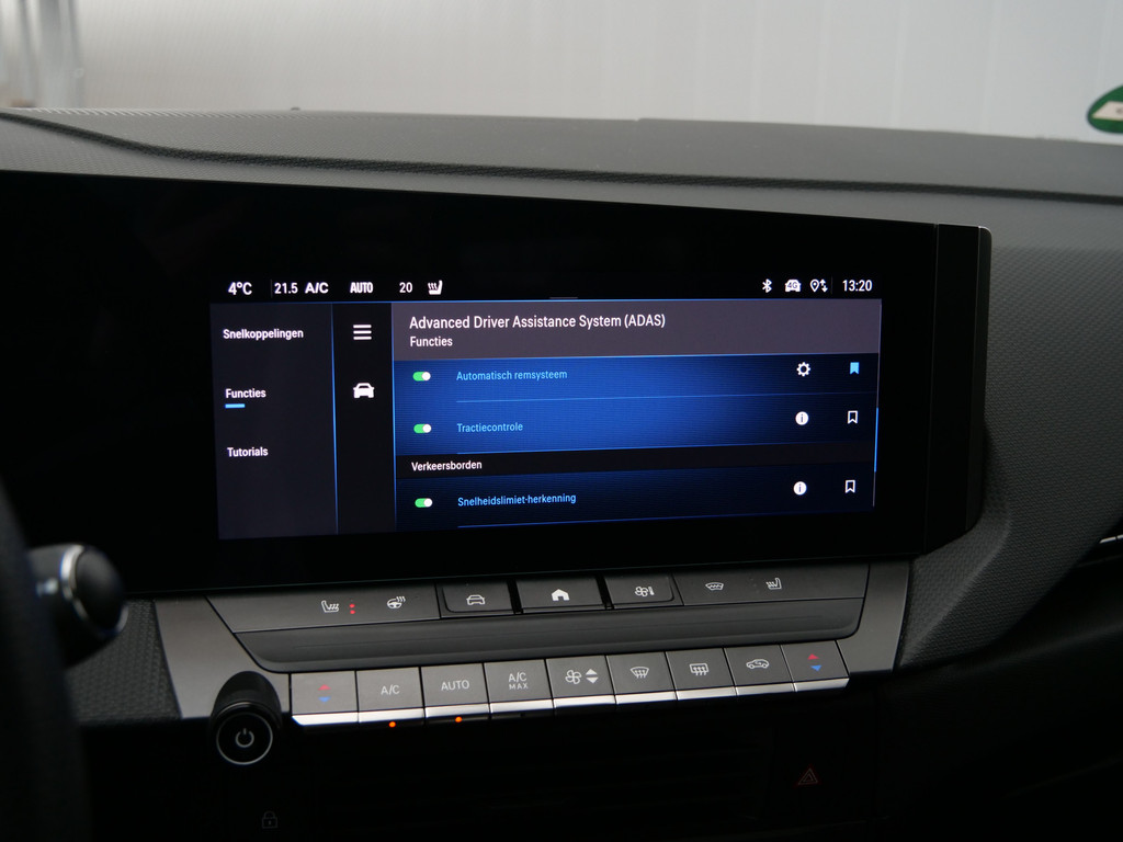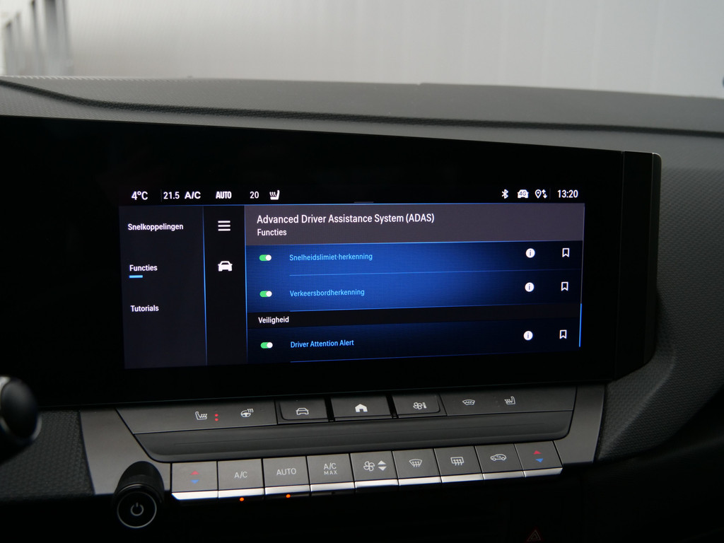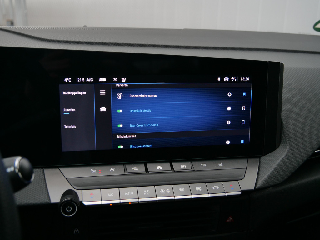 Dankzij het digitale dashboard leest u alle benodigde info gemakkelijk en overzichtelijk af. De 360 graden camera wordt mogelijk gemaakt door vier camera's die tezamen werken om zo een uitgebreid zicht te bieden, wat van grote waarde is bij het navigeren door smalle straatjes en parkeerplekken. Adaptive cruise control houdt de ingestelde snelheid vast en houdt afstand tot het voertuig voor u. Als u regelmatig met een aanhanger of een fietsendrager op pad bent, is de afneembare trekhaak een praktische extra. Niet alleen is er aan boord DAB-radio beschikbaar, maar het audiosysteem zorgt ook nog eens voor fantastische weergave. U bent in deze Opel ook voorzien van electronic climate control, draadloos opladen, regensensor, keyless entry, automatisch dimmende binnenspiegel en lederen stuur.
