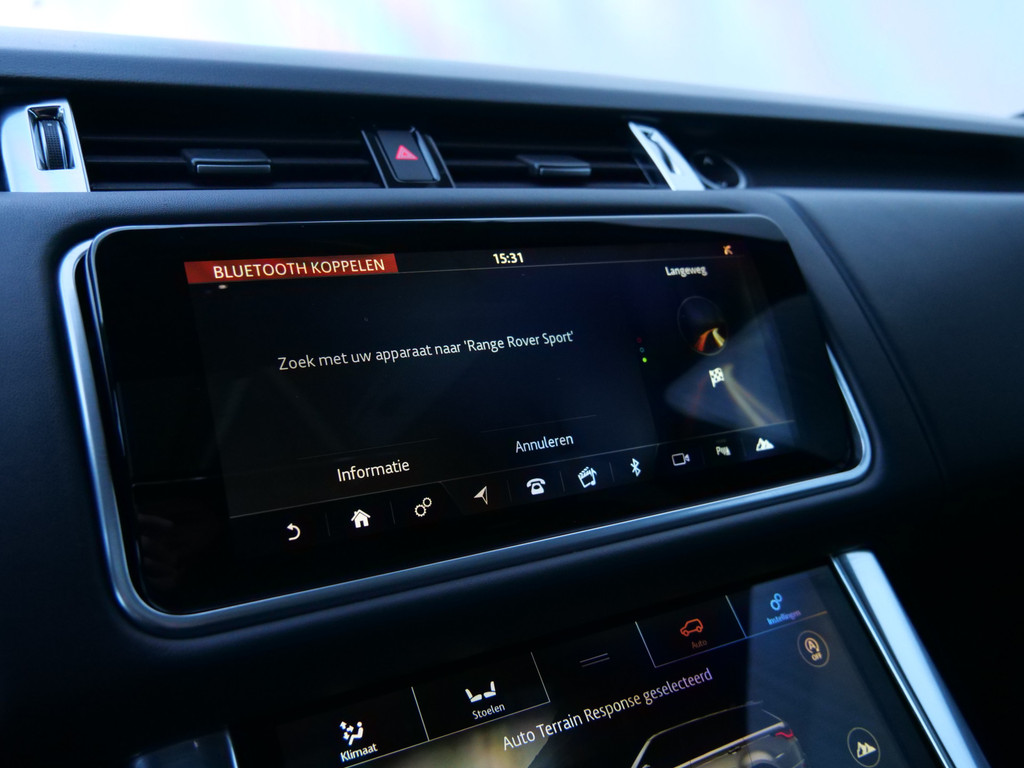 Het systeem controleert alle belangrijke functies en geeft die perfect weer via het digitale dashboard. Bij het inparkeren laat de achteruitrijcamera precies zien hoeveel meter... decimeter... centimeter ruimte er nog is! Deze Land Rover Range Rover Sport is 'connected'. Belangrijke functies worden permanent gemeten en zijn uit te lezen via een speciale app, ook op afstand. Uw favoriete muziek klinkt beter dan ooit met het ingebouwde high performance audiosysteem. Of het buiten nu warm is of koud, dankzij electronic climate control is het binnen altijd behaaglijk. Deze Land Rover is voorzien van dashboard met spraakbediening, full map navigatiesysteem, schakelpaddles aan het stuur, DAB ontvangst, regensensor en cruise control.