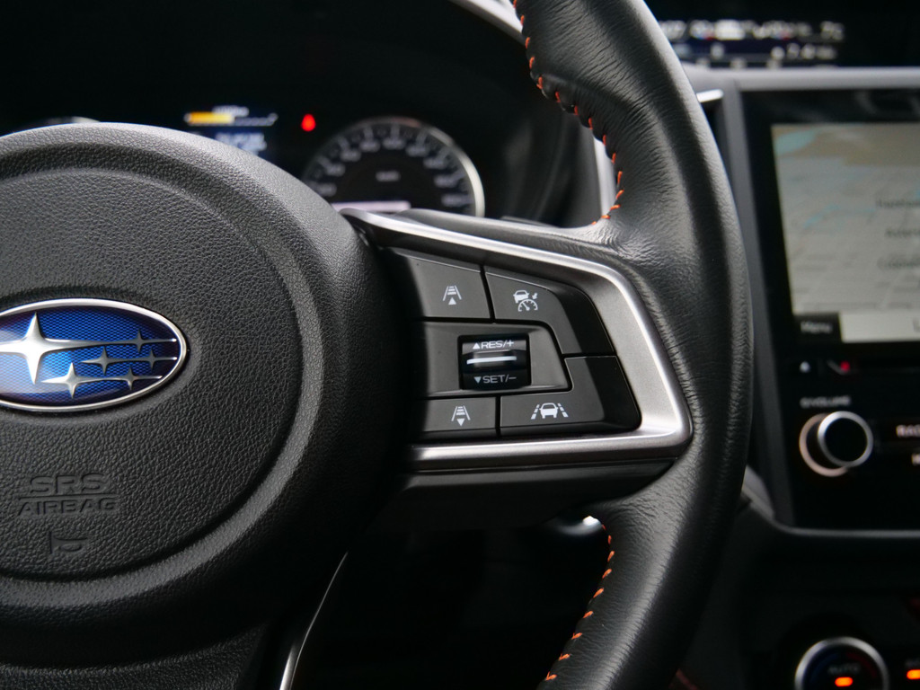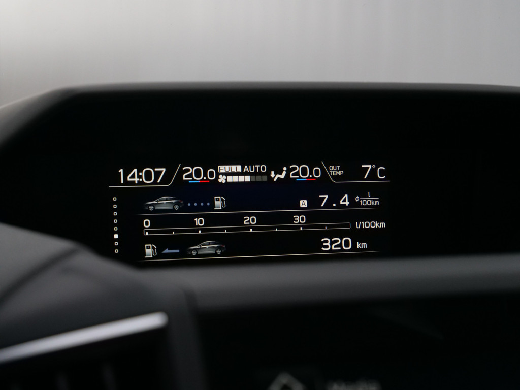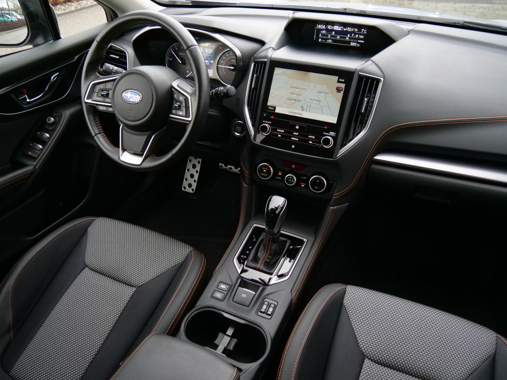 Wat een gemak, die achteruitrijcamera. Alles in beeld zonder capriolen. Met adaptive cruise control houdt de auto zelfstandig afstand tot uw voorligger. Een veiligheidsverhogende optie waarmee u comfortabel onderweg bent. Een veiligheidsverhogende optie is de ingebouwde spraakbediening. Terwijl u uw ogen op de weg houdt, bedient u de auto met uw stem. Met de routebegeleiding van het full map navigatiesysteem kunt u zich volledig op het verkeer concentreren. U verwacht natuurlijk electronic climate control in deze auto, en die is er dan ook. Ook is de Subaru uitgerust met: schakelpaddles aan het stuur, DAB ontvangst, regensensor, keyless entry en automatisch dimmende binnenspiegel.
