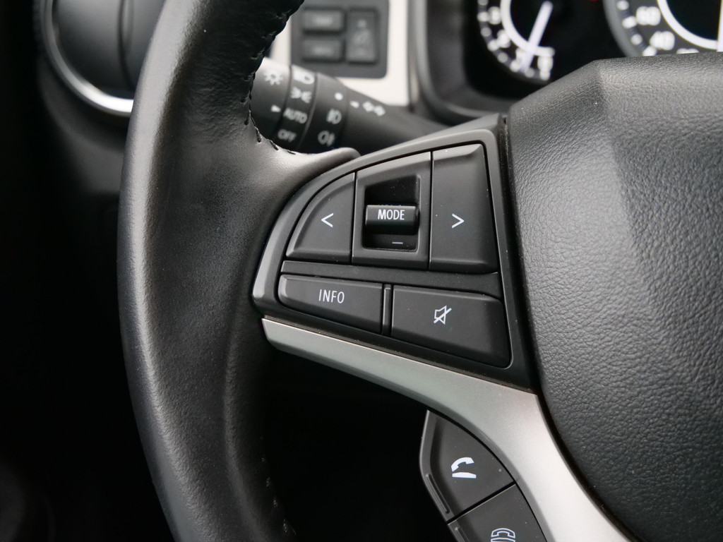 Kinderfietsje niet gezien bij het inparkeren? Dat gebeurt u nooit meer. Daar zorgt de achteruitrijcamera wel voor! In deze auto beschikt u natuurlijk over een full map navigatiesysteem. Het audiosysteem met DAB-radio biedt glasheldere geluidskwaliteit. U bedient dit veilig via het stuurwiel. Tot de standaard uitrusting van deze auto hoort ook electronic climate control. Een constante snelheid is goed voor de ontspanning onderweg, en de cruise control zorgt ervoor. Een comfortabele optie is keyless entry. U kunt de portieren openen en afsluiten zonder de sleutel vast te houden. Met lederen stuur, centrale deurvergrendeling met afstandsbediening, bagage afdekhoes en boordcomputer is deze Suzuki helemaal compleet.