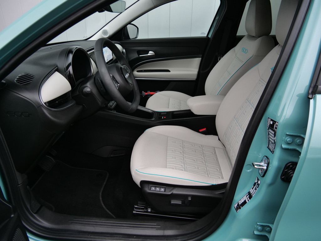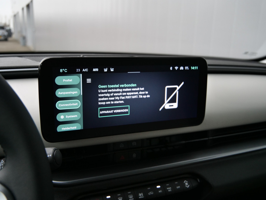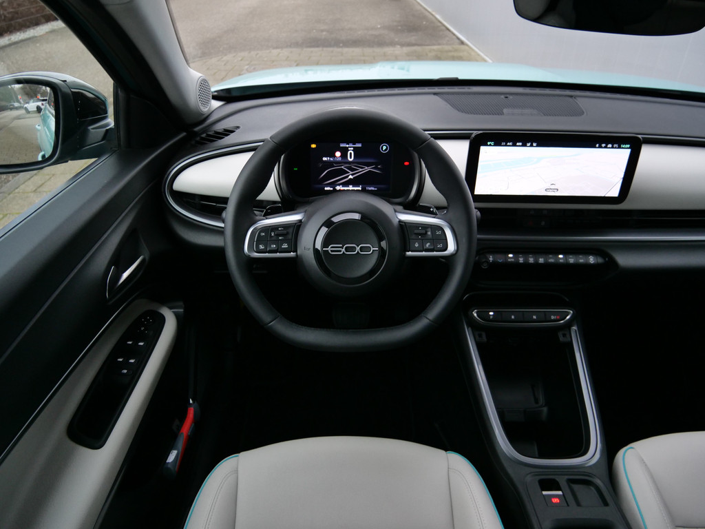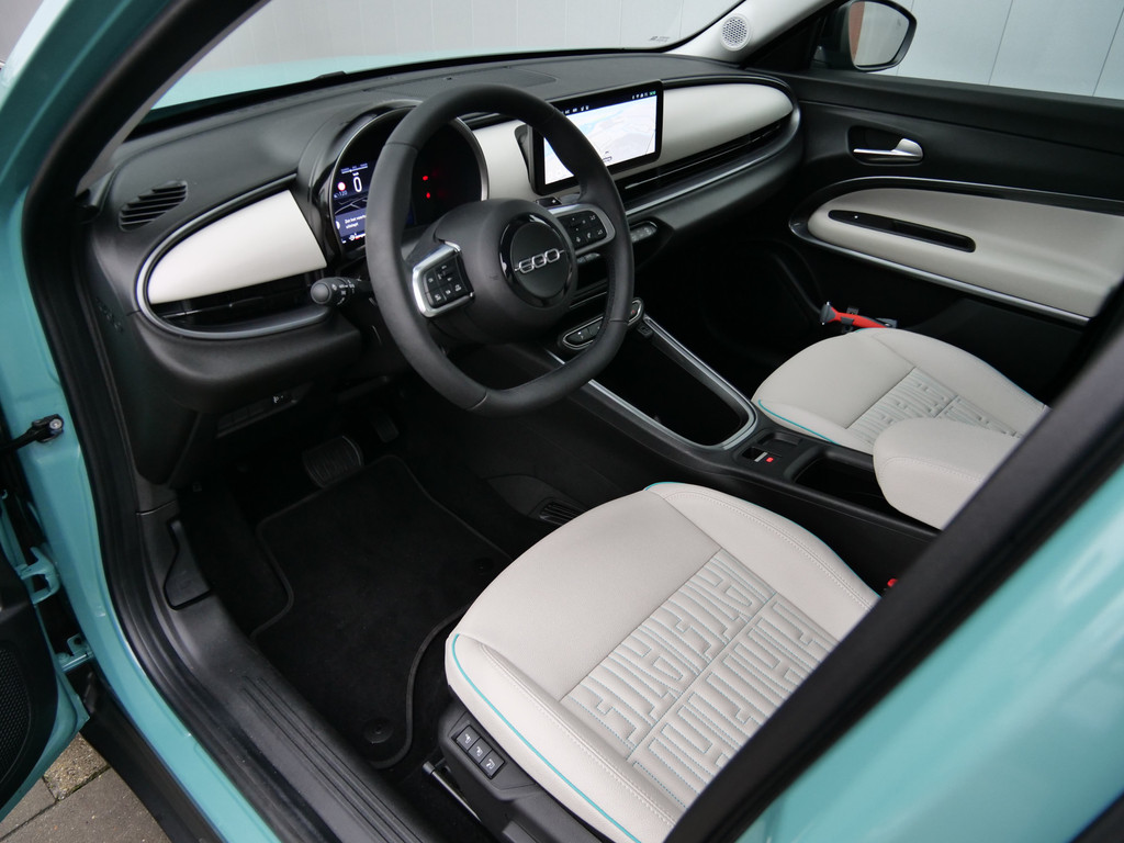 Zoals u mag verwachten van deze Fiat 600 is hij uitgerust met een reeks aan actieve veiligheidssystemen. In het instrumentarium kunt u bovendien de verkeersborden zien die u onderweg tegenkomt. Zo helpt deze Fiat u om veiliger te rijden. Op lange ritten voorkomt de vermoeidheidsassistent dat uw concentratie afneemt. De auto is ook uitgerust met dodehoekdetectie en autonoom remsysteem.