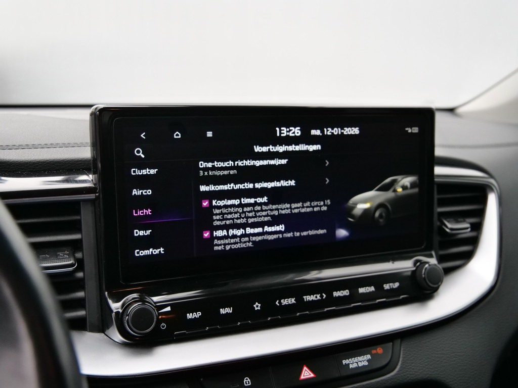 Deze Kia is voorzien van verschillende intelligente veiligheidsvoorzieningen. Ze kijken tijdens het rijden als het ware met u mee, ze signaleren potentieel gevaarlijke situaties en in een aantal gevallen kunnen ze ook ingrijpen. Dat de auto steeds meer taken van de bestuurder overneemt, merkt u bijvoorbeeld aan het systeem voor verkeersbord-detectie in deze auto. Onbedoeld buiten de rijstrook raken wordt voorkomen door het Lane-keeping systeem. De actieve dodehoekdetectie voorkomt dat u een voertuig over het hoofd ziet en waarschuwt tijdig. De veiligheid van deze auto wordt verder verhoogd door forward collision warning system, hill hold functie, vermoeidheidsherkenning, autonoom remsysteem en bandenspanningcontrolesysteem.