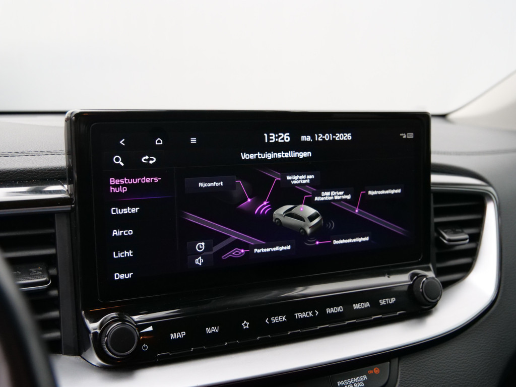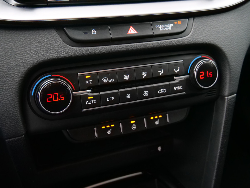 Deze Kia is voorzien van verschillende intelligente veiligheidsvoorzieningen. Ze kijken tijdens het rijden als het ware met u mee, ze signaleren potentieel gevaarlijke situaties en in een aantal gevallen kunnen ze ook ingrijpen. Dat de auto steeds meer taken van de bestuurder overneemt, merkt u bijvoorbeeld aan het systeem voor verkeersbord-detectie in deze auto. Onbedoeld buiten de rijstrook raken wordt voorkomen door het Lane-keeping systeem. De actieve dodehoekdetectie voorkomt dat u een voertuig over het hoofd ziet en waarschuwt tijdig. De veiligheid van deze auto wordt verder verhoogd door forward collision warning system, hill hold functie, vermoeidheidsherkenning, autonoom remsysteem en bandenspanningcontrolesysteem.