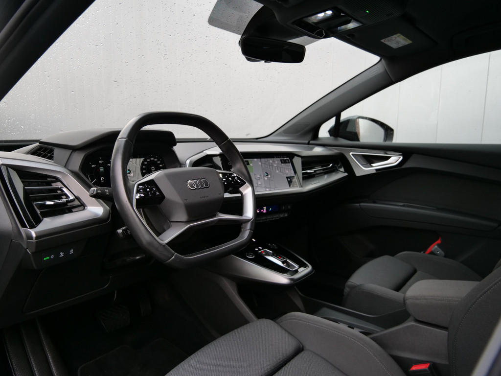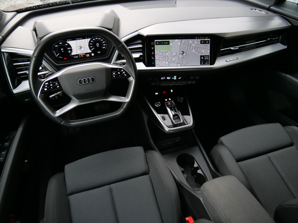 Duurzaam en dynamisch, de Audi Q4 Sportback e-tron verenigt deze twee uitersten in zich. Dit is een auto uit 2023, er staat 37412 kilometer op de teller. De prestaties van de elektromotor kunnen de vergelijking met een brandstofmotor moeiteloos aan. De krachtige motor geeft deze Audi uitstekende prestaties. Op koude dagen voelt u zich snel behaaglijk op de verwarmbare stoelen. De bagageruimte is toegankelijk via een comfortverhogende elektrische achterklep. Opvallend is de geavanceerde matrix LED-verlichting met daglichtkwaliteit. De koplampen dimmen automatisch het deel van de lichtstraal waar voor- of tegenliggers in rijden. De overige segmenten blijven aan en verlichten de weg maximaal. Bij de uitrusting van deze Audi horen onder meer 19 inch lichtmetalen velgen, neerklapbare achterbank en LED-achterlichten.