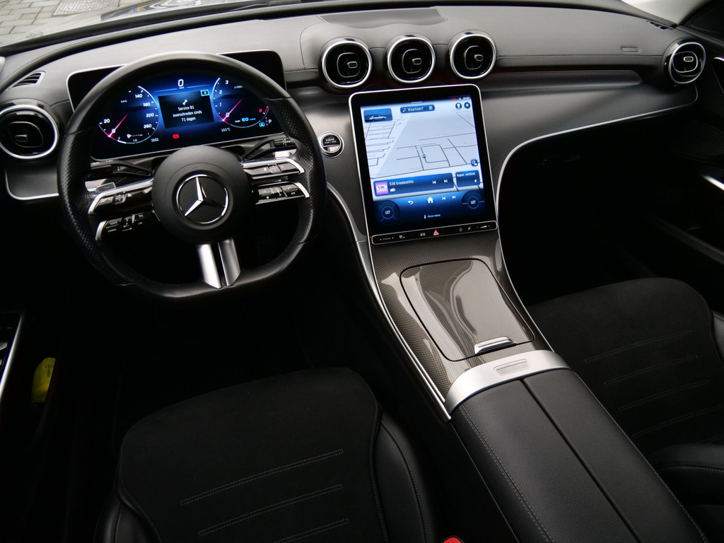 U leest alle belangrijke functies helder af dankzij het digitale dashboard. Boem is ho? Dat is verleden tijd. De achteruitrijcamera laat precies zien hoeveel ruimte u achter nog heeft! Spraaksturing is onderdeel van de uitrusting van deze auto. Met uw stem kunt u de belangrijkste voertuigfuncties bedienen. Deze Mercedes-Benz C-klasse is 'connected'. Belangrijke functies worden permanent gemeten en zijn uit te lezen via een speciale app, ook op afstand. De kortste weg, de zuinigste weg, de snelste weg... elke weg is te vinden met het full map navigatiesysteem. Ook is de Mercedes-Benz uitgerust met: automatische airconditioning, draadloos opladen, DAB ontvangst, regensensor, cruise control en sportstuurwiel.